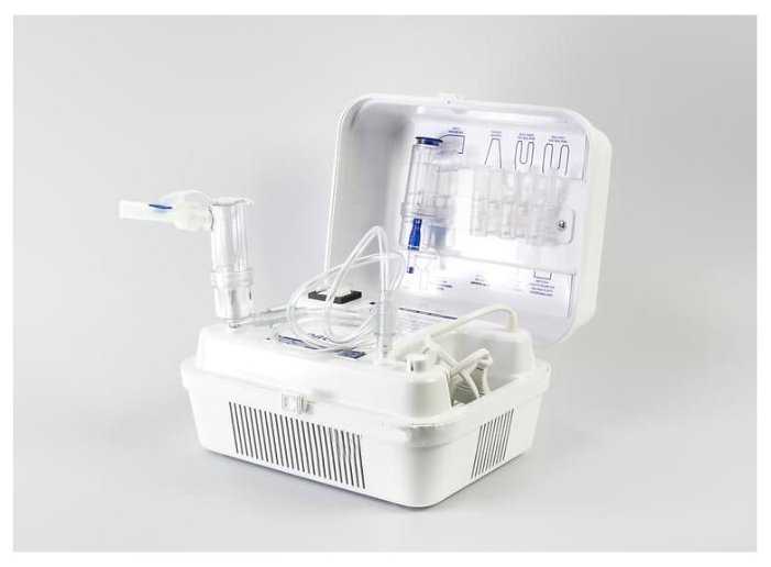 - + Достаточный набор для всех вариантов ингаляции, наличия тройника для "холостого хода", что позволяет не распылять лекарство при выдохе. Длительное время непрерывной работы. Почти весь комплект помещается в кейсе. Есть загубник с клапаном выдоха.