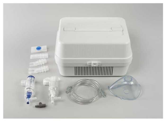 - + Достаточный набор для всех вариантов ингаляции, наличия тройника для "холостого хода", что позволяет не распылять лекарство при выдохе. Длительное время непрерывной работы. Почти весь комплект помещается в кейсе. Есть загубник с клапаном выдоха.