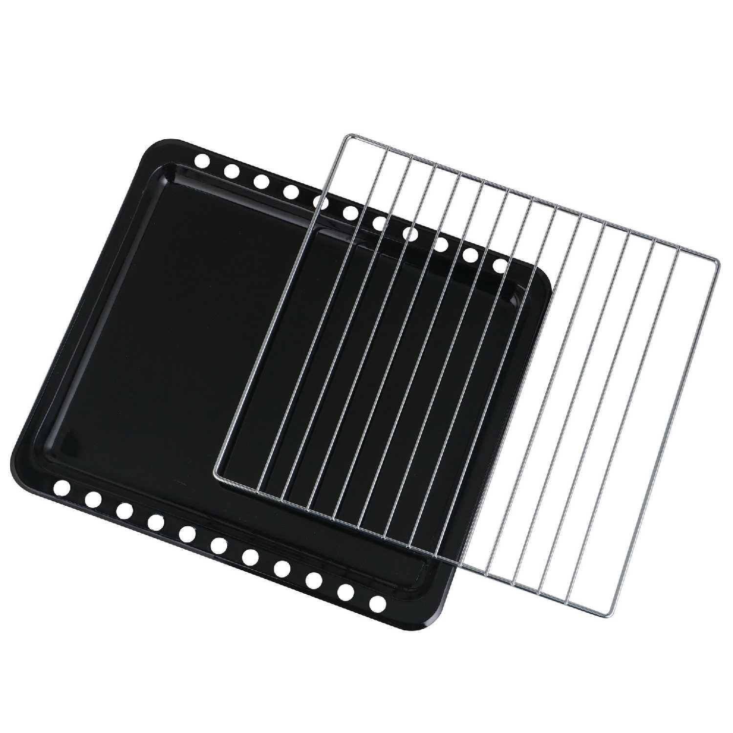 - В комплекте решетка и противень, подсветка внутри упрощает контроль процесса.