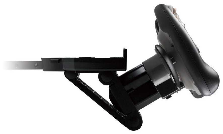 Струбцины обеспечивают надёжную фиксацию на столешницах до 40 мм, но оставляют вмятины на дереве. Присоски не держат на гладких поверхностях при активном использовании. Для КПП предусмотрена отдельная струбцина, но её угол наклона не регулируется, что может вызывать дискомфорт при длительной игре. Педальный блок без крепежа скользит по кафелю и ламинату. -