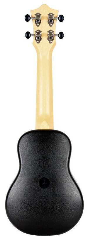 Пластиковый корпус идеален для походов, пляжа или у костра: не боится влажности, температуры и отопления. Лёгкая и компактная, с чехлом легко таскается на тусовки вместо гитары. Пользователи отмечают отсутствие проблем с деревом в переходные периоды. Строй слегка плывёт при перепадах, но меньше, чем у деревянных. Хороший выбор для путешественников.