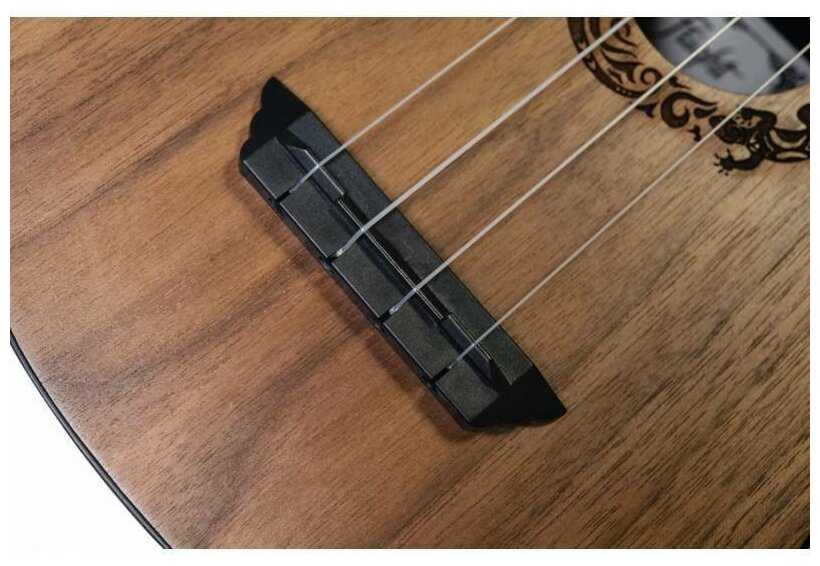 - + Изначально зацепил дизайн, но укулеле понравилась не только внешним видом. Хорошо звучит, неплохо строит, удобный гриф, можно брать с собой на природу и не бояться, что что-то случится с древесиной.