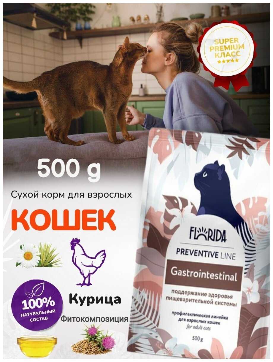 Сравнительная эффективность и позиционирование на рынке специализированных кормов: В сравнительном контексте корм Florida позиционируется пользователями как удачная и часто более доступная альтернатива кормам супер-премиум класса и ветеринарным диетам таких брендов, как Farmina (в частности, линейка Renal), Royal Canin Gastrointestinal, Monge, Pro Plan и Leonardo. Эмпирические данные свидетельствуют, что по эффективности решения проблем ЖКТ и почечных нарушений он не уступает указанным аналогам, а в случае с аллергиями на курицу — зачастую превосходит их, поскольку многие из перечисленных конкурентов содержат куриный жир в составе. Опыт перевода животных с других кормов, включая те, что исчезли с рынка, проходил гладко, без негативных последствий для пищеварения и без потери аппетита у животных, что демонстрирует хорошую palatability (поедаемость) и адаптивность формулы. Важным аспектом является его профилактическая, а не строго лечебная направленность, что позволяет использовать его для здоровых животных без риска навредить, в отличие от узкоспециализированных ветеринарных линеек, которые не предназначены для длительного применения у здоровых кошек. Состав корма, включающий такие функциональные добавки, как хондроитин и глюкозамин, отмечается владельцами пород, предрасположенных к проблемам с суставами, как значительное преимущество, подтвержденное улучшением состояния питомцев при длительном применении. Объективным недостатком в составе некоторые пользователи называют наличие кукурузы, что может быть минусом для приверженцев полностью беззерновых диет, однако массовых негативных реакций на этот компонент в отзывах не зафиксировано, и большинство владельцев оценивают общий состав как чистый и понятный.