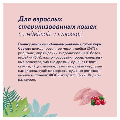 - Производитель предлагает разнообразные вкусы (индейка, лосось, говядина) и специализированные линейки (для стерилизованных кошек, с пониженным содержанием фосфора), удовлетворяя различные потребности.