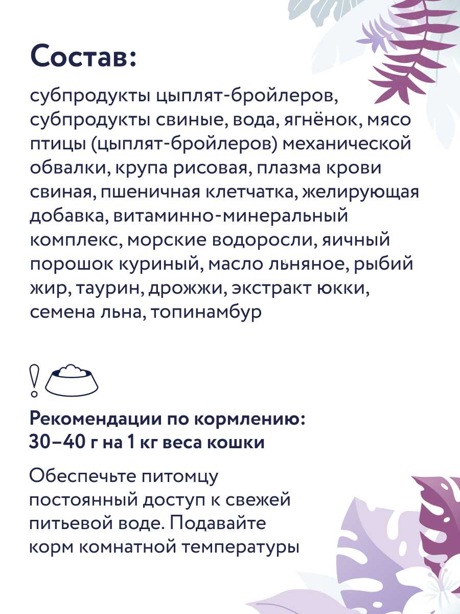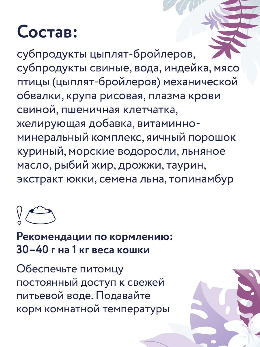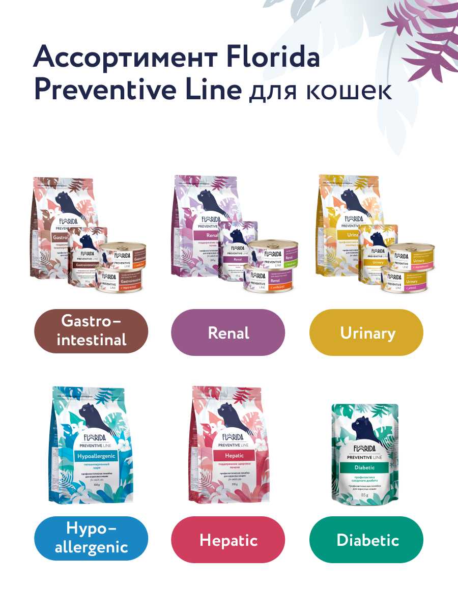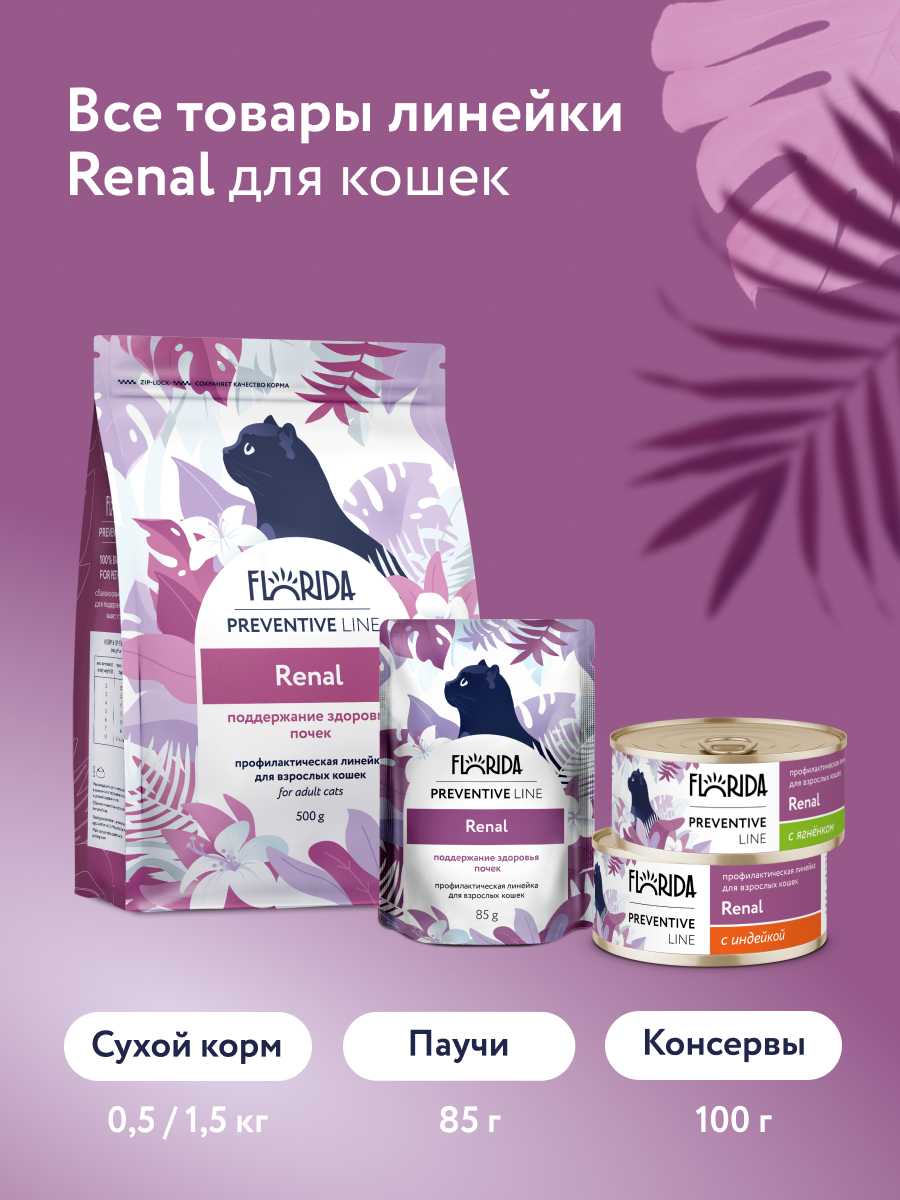 Консервы отличные, консистенция плотная, суховатая, рубленое мясо. У меня кошка 15 лет с ХБП и проблемами с ЖКТ. Киса сама не кушает уже 9 мес, кормлю принудительно. Раньше это были паштеты из шприца, но паштеты для почечников, производимые в России, все жирные, и в итоге мы "посадили" печень и поджелудочную. Теперь кормлю Флоридой, чередуя банки для чувствительного пищеварения и для почек. Из шприца ими кормить невозможно, надо предварительно измельчать блендером. Но моя кошка в таком виде есть отказывается. Поэтому мне подходят такие плотные консервы, как эти, даю кусочками на корень языка, киса глотает.
