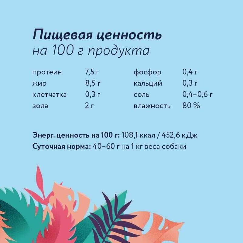 | Пищевая ценность : | на 100 г. продукта: протеин 7, 5 г, жир 8, клетчатка 0, 3 г, зола 2, 0 г, массовая доля соли 0, 4-0, 6 г, влажность 80%, фосфор 0, 4 г, кальций 0, 3 г. |