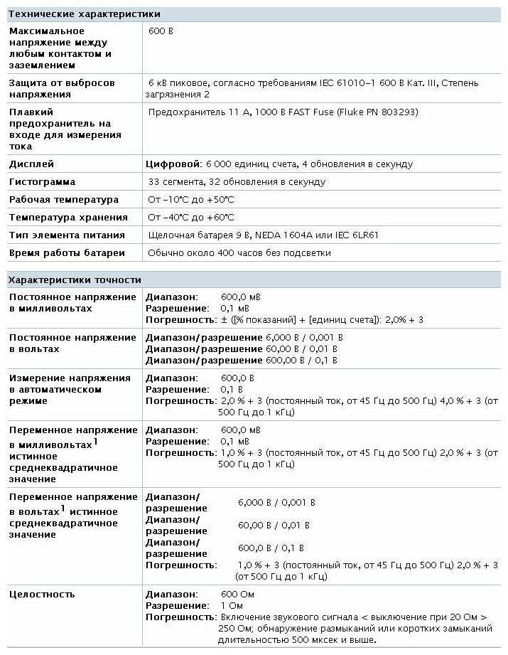 Характеристи FLUKE 117
