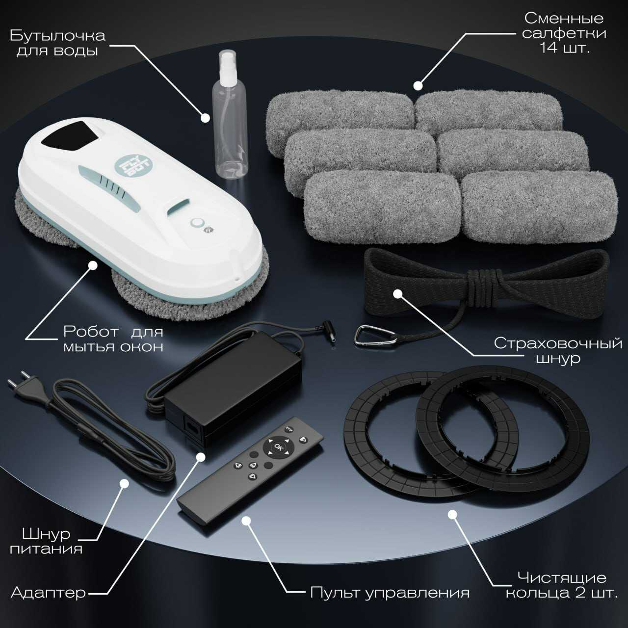 - - Пульт хлипкий пластик, сразу сломалась крышка для батареек. Сменных салфеток хотелось бы по больше, на большую площадь окон не хватает.