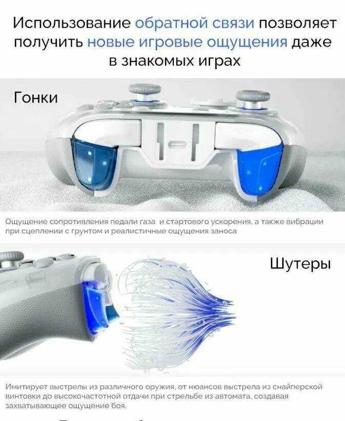 Во всех играх (даже старых) распознается как боксовый геймпад, поэтому проблем с настройкой управления нет вообще. Есть доп. кнопки для назначения функций через фирменную программу Flydigi, однако в большинстве игр они не нужны (я лично на 1 кнопку снизу поставил включение и отключение гироскопа, остальные не использую)