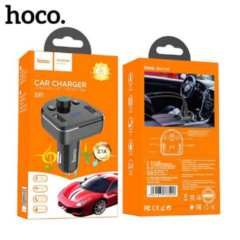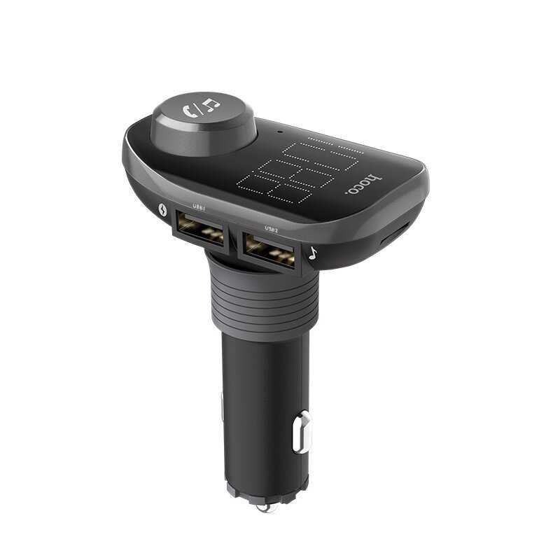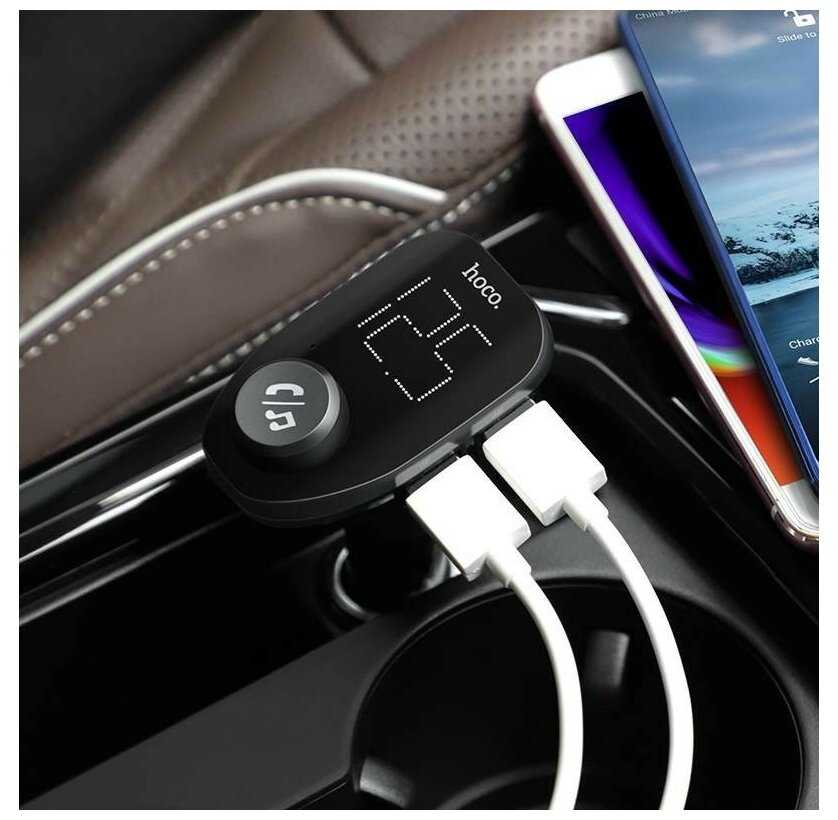 Hoco E45 Happy route, 2*USB + FM-трансмиттер, 2.4A, черный, дисплей/Bluetooth/TF