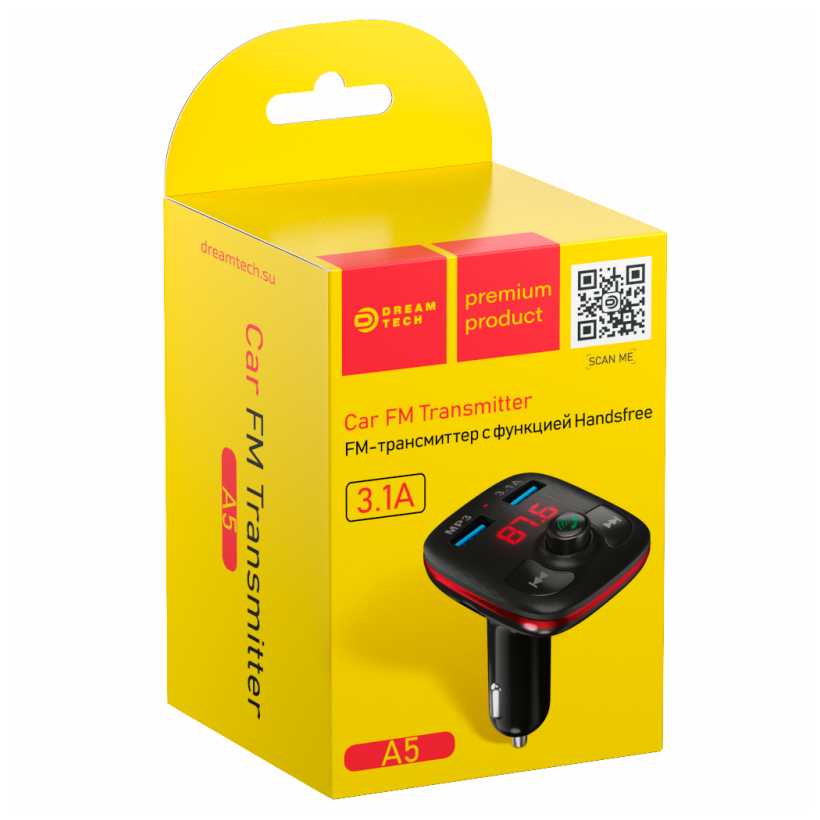 Dream FM-трансмиттер BLUETOOTH A5 (SDHC, 2USB 3.1A , HF, LED) черный DREAM
