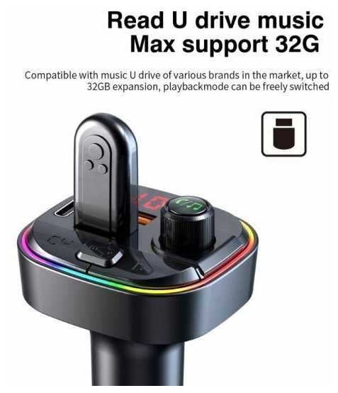 TDS FM трансмиттер Bluetooth с RGB подсветкой (-22)