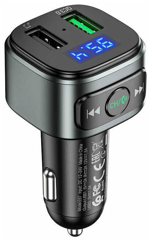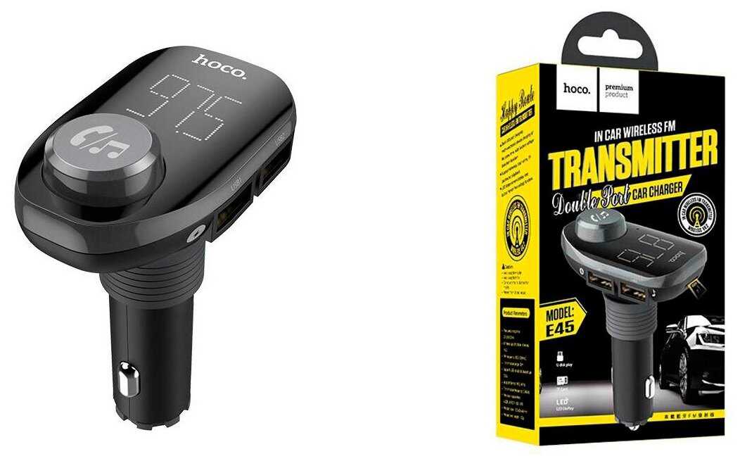 Hoco E45 Happy route, 2*USB + FM-трансмиттер, 2.4A, черный, дисплей/Bluetooth/TF