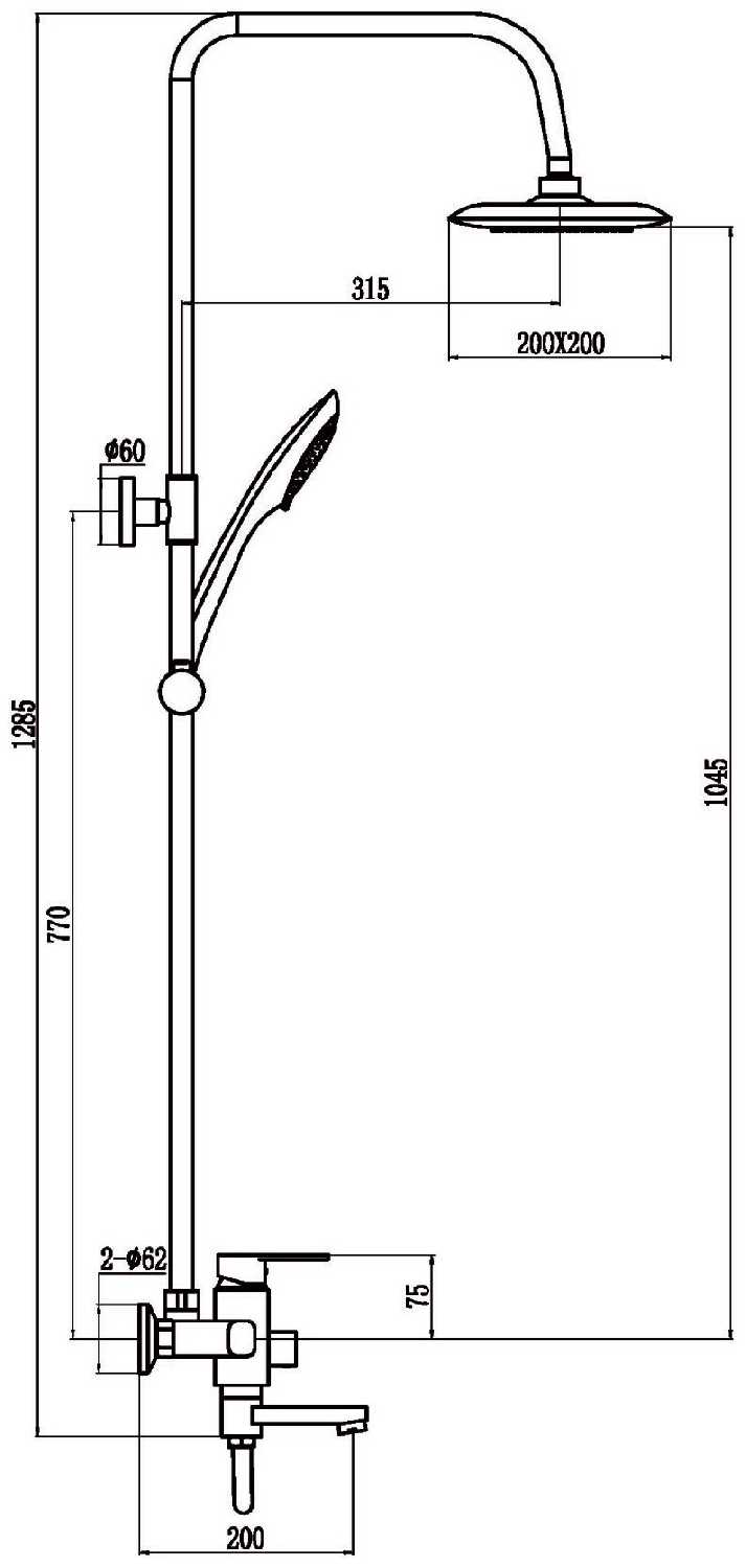 | Комплектация : | верхний душ, держатель лейки, душевая штанга, излив для набора воды, лейка, ручной душ, смеситель, шланг |