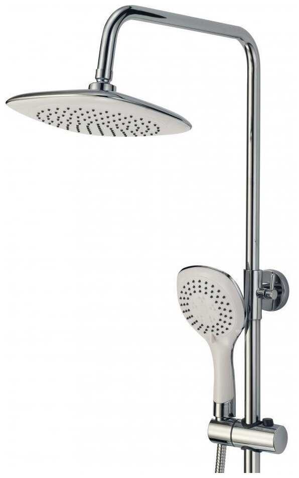 | @Комплектация : | 1.Смеситель для ванны однорычажный с коротким изливом 2.Душевая стойка 3.Шланг для душа 4.Ручной душ (ABS-пластик) 5.Кронштейн для ручного душа 6.Верхний тропический душ с режимом Rain с шаровым шарниром |