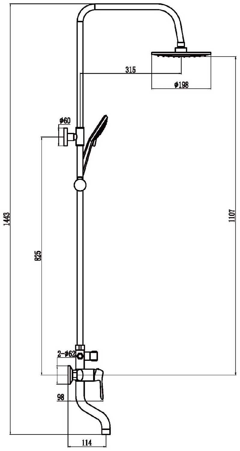 | Комплектация : | вентиль, верхний душ, излив для набора воды, лейка, ручной душ, смеситель, шланг |