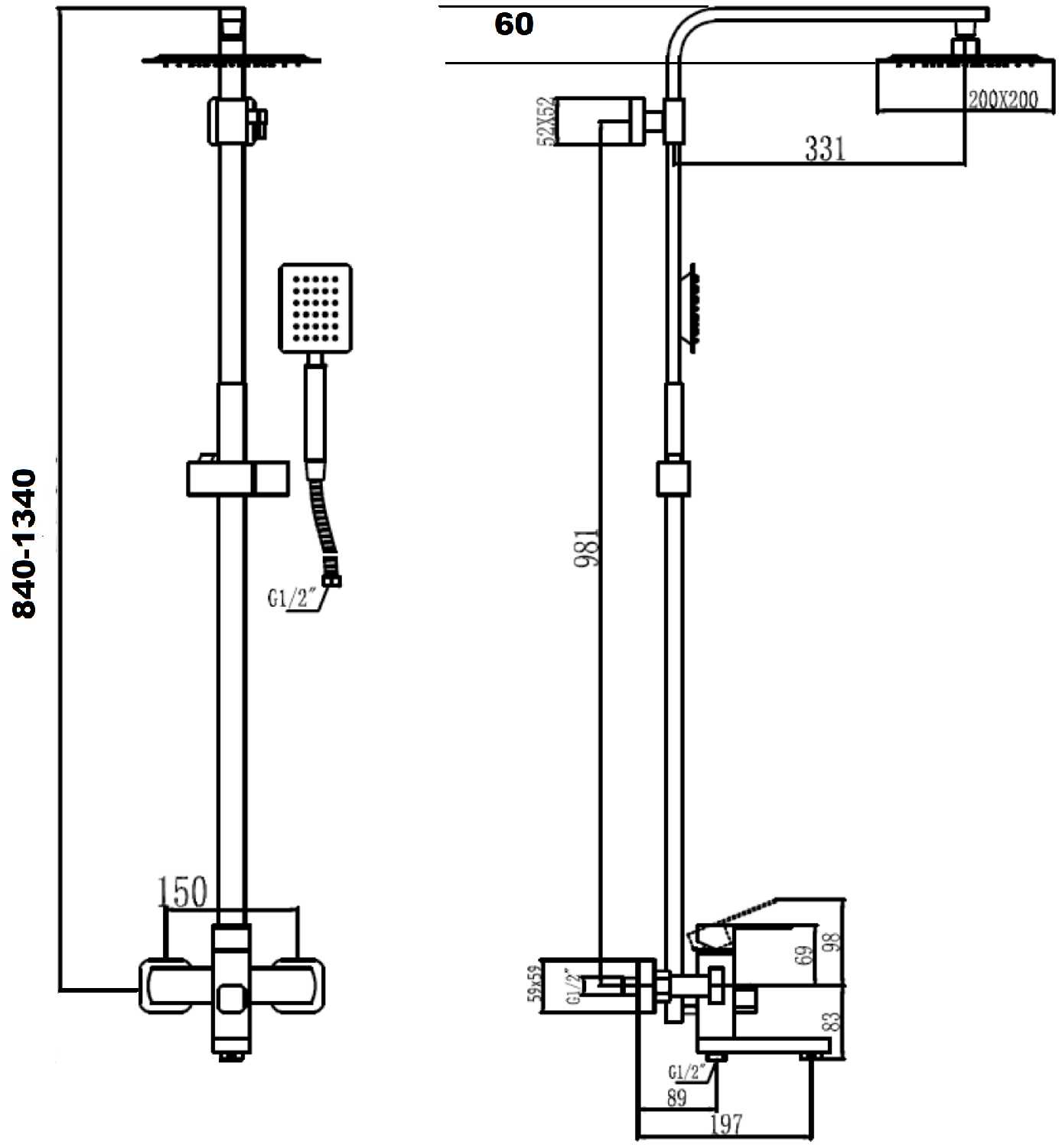 | Высота стойки для душа : | 1340 мм |