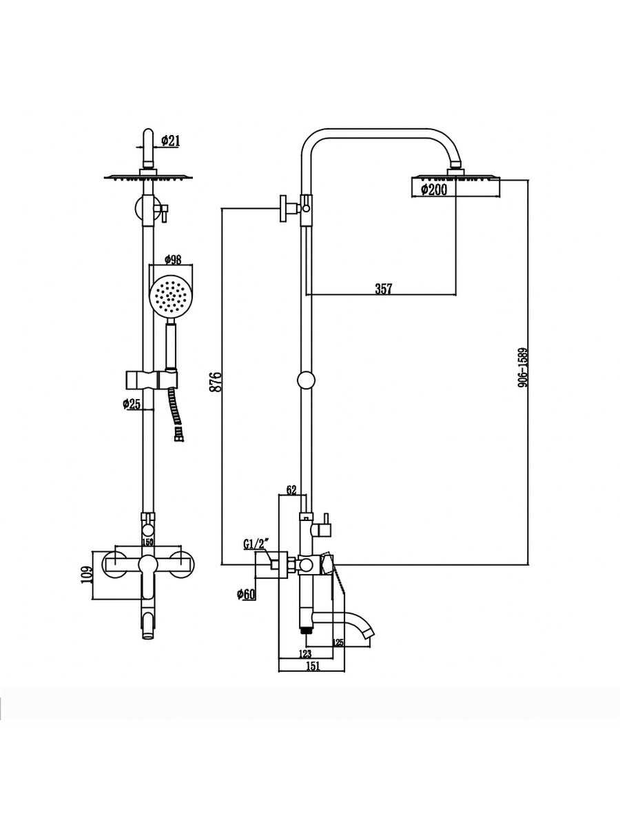 | Высота стойки для душа : | 1590 мм |