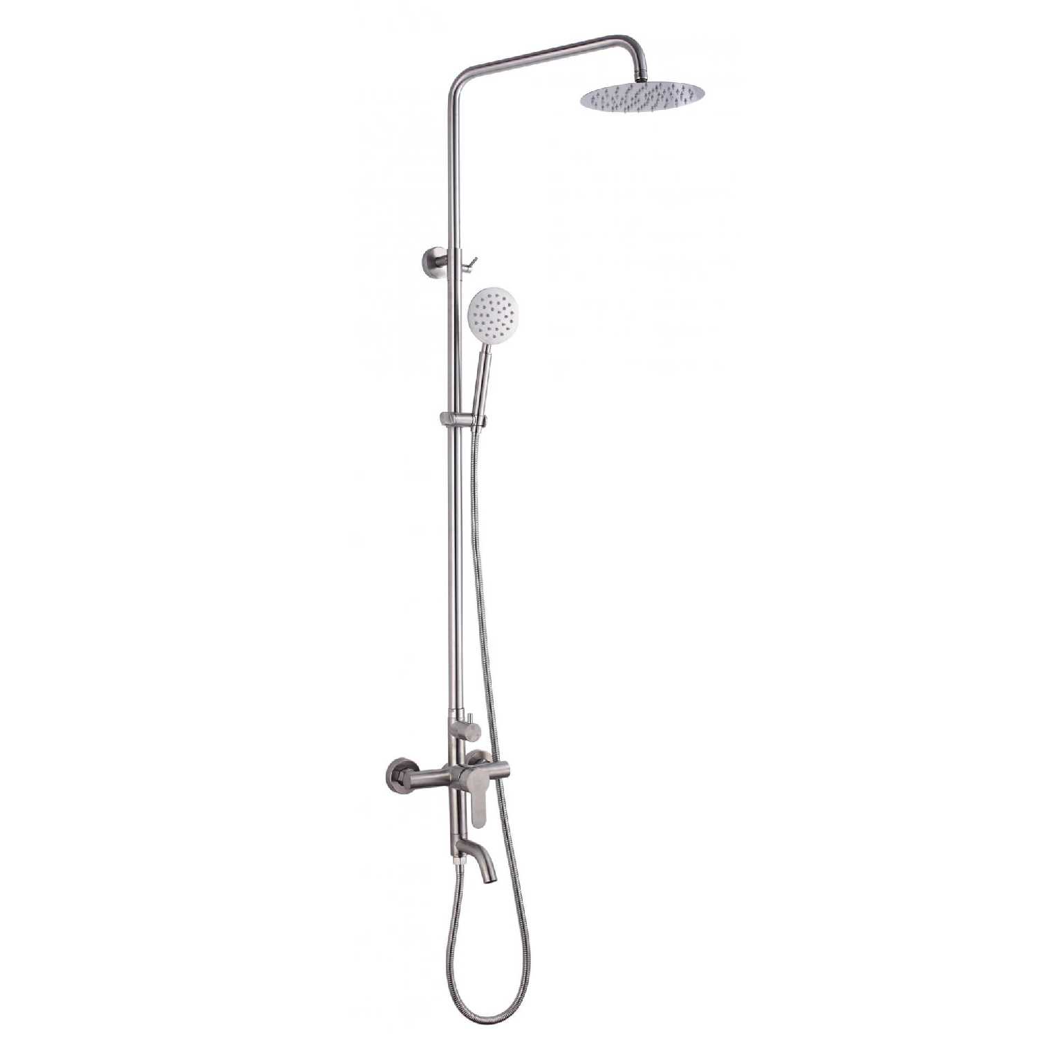 Комплектация : | лейка, шланг, кронштейн, верхний душ, ручной душ, излив для набора воды, душевая стойка, набор эксцентриков, смеситель, кронштейн для верхнего душа, душевая штанга |