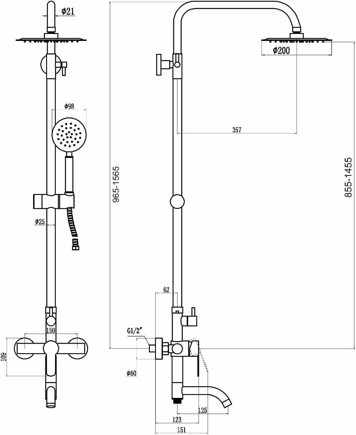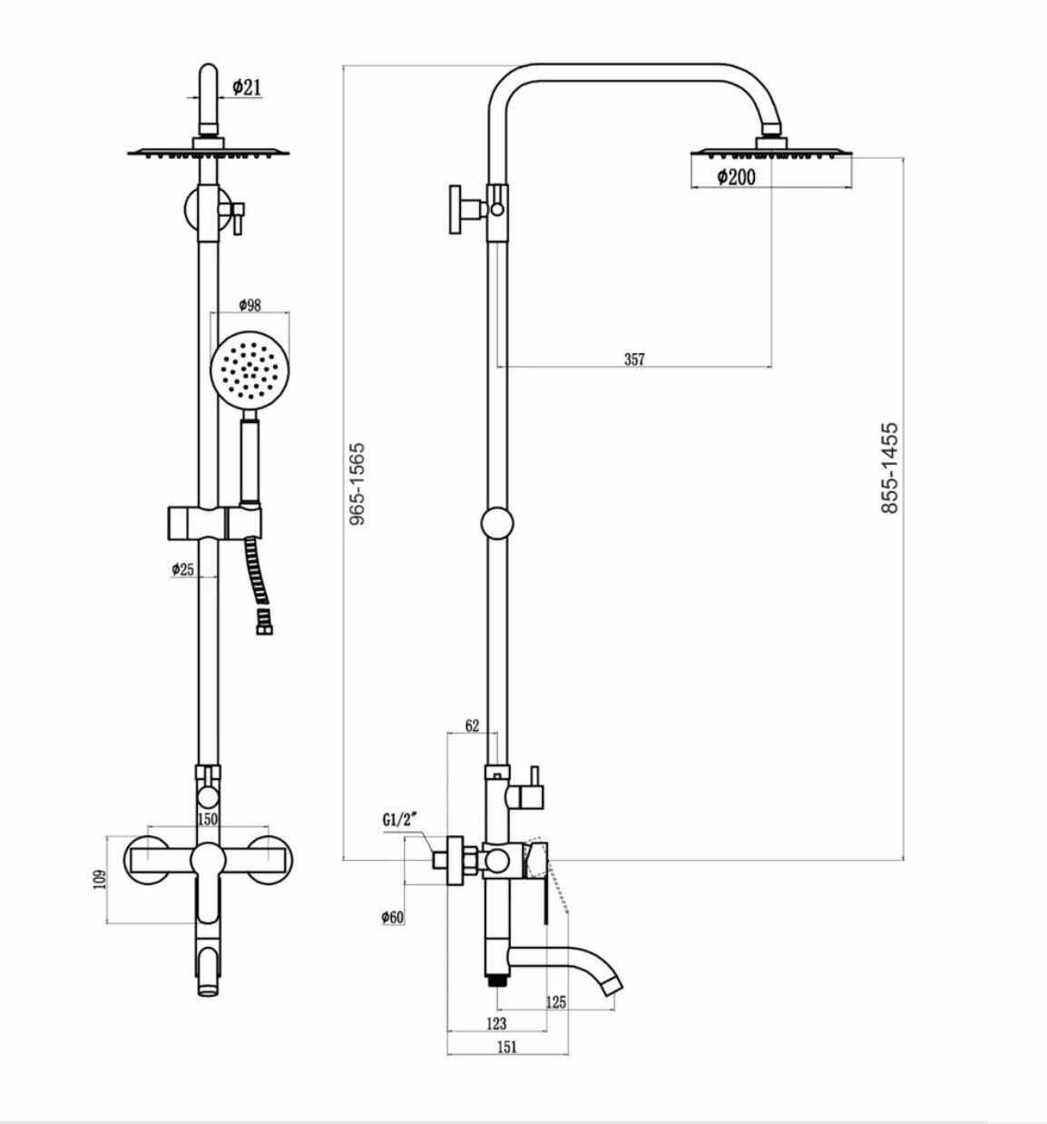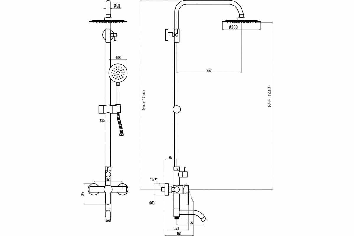 Дополнительная информация : | размер верхнего душа 20 см, размер головки ручного душа 9.8 см |