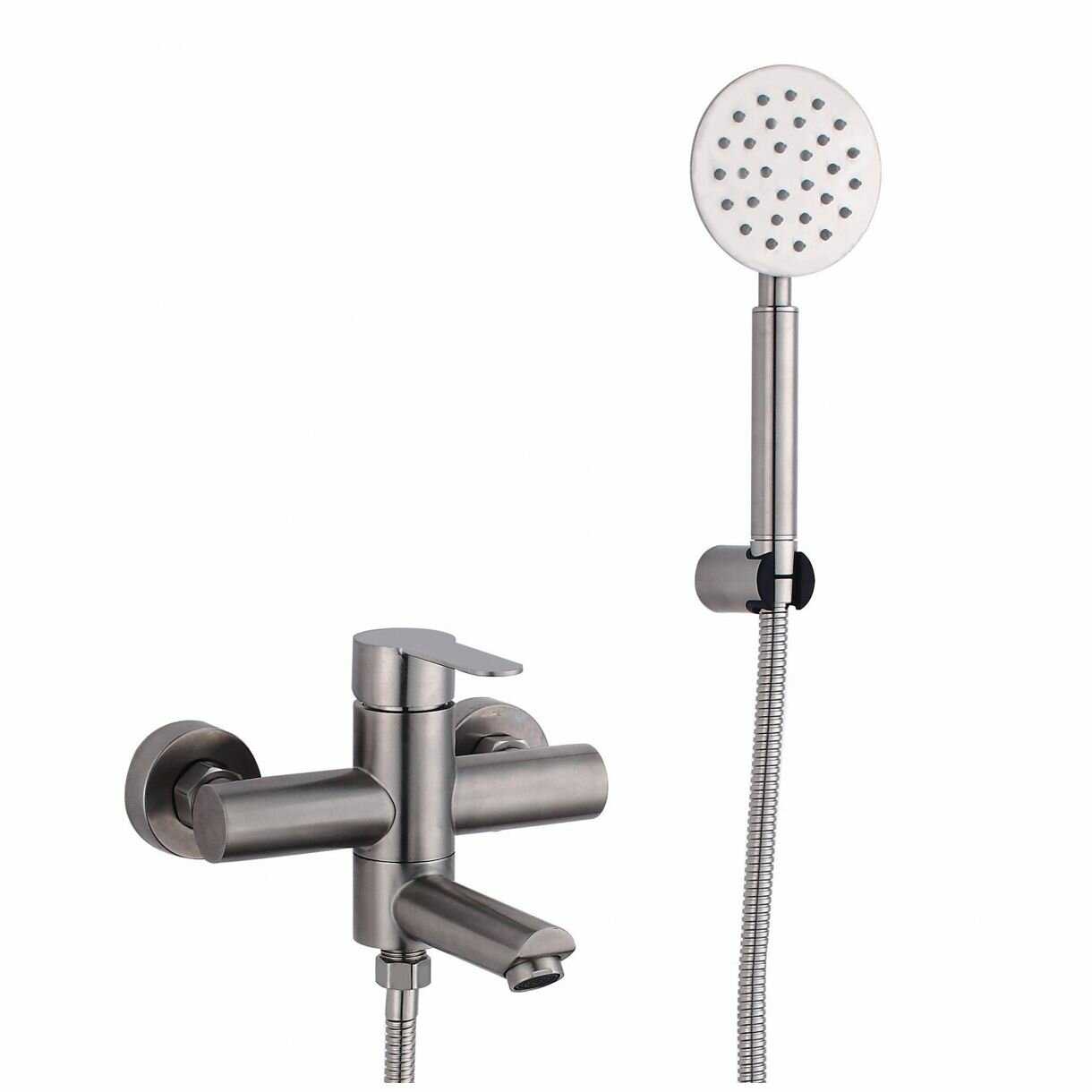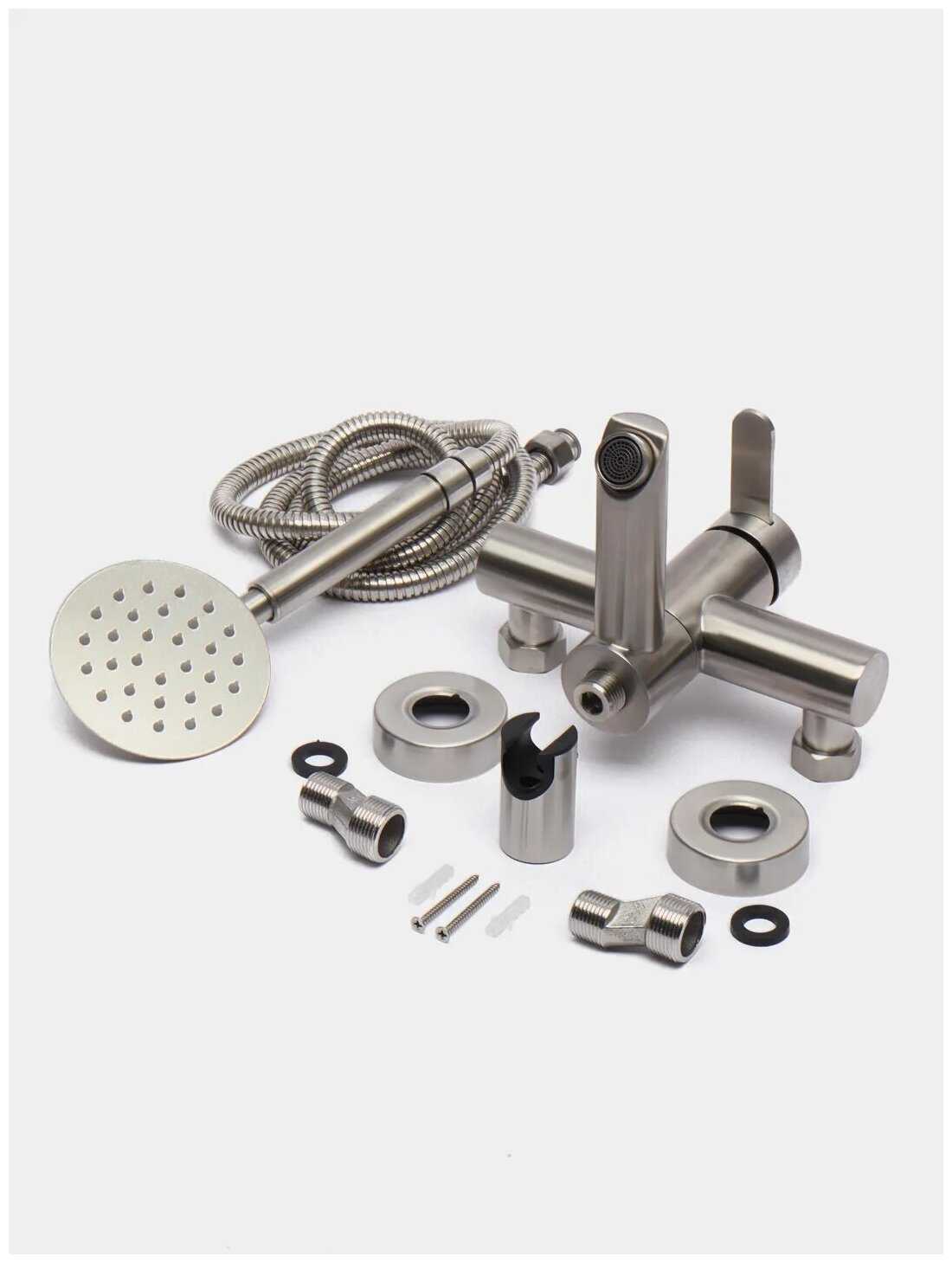 Комплектация : | держатель лейки, излив для набора воды, лейка, ручной душ, смеситель, шланг, эксцентрик |