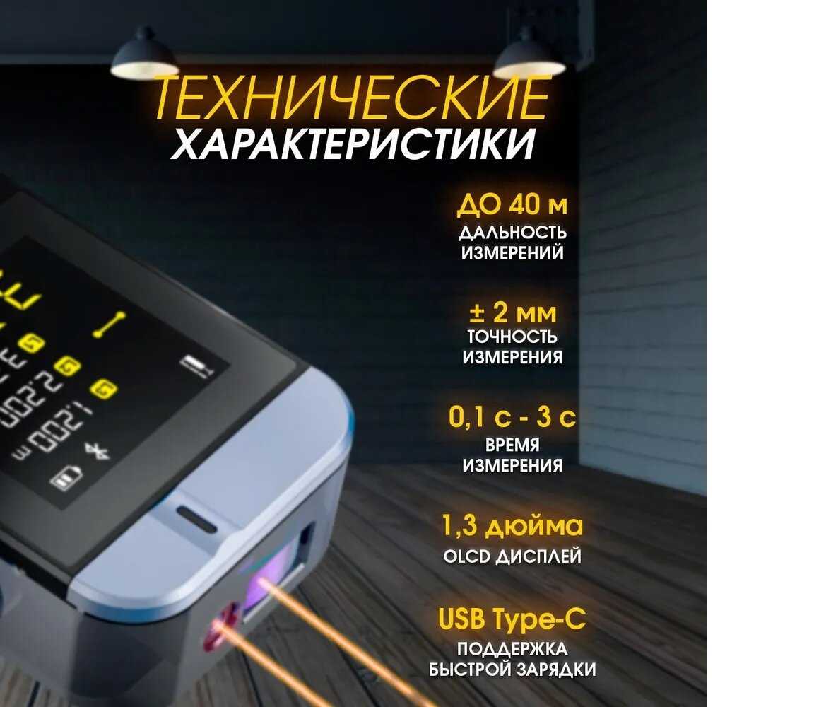 - + не большой , добротный , хорошо сделан . мерит точно . Есть корректировка точности . пользуюсь не часто , но доволен . работа от аккумулятора . тайп -C зарядка . интуитивно понятное управление . показания поворачиваются при изменении угла на 90° . всегда удобно . хороший дальномер . функции . подключение по блютуз.