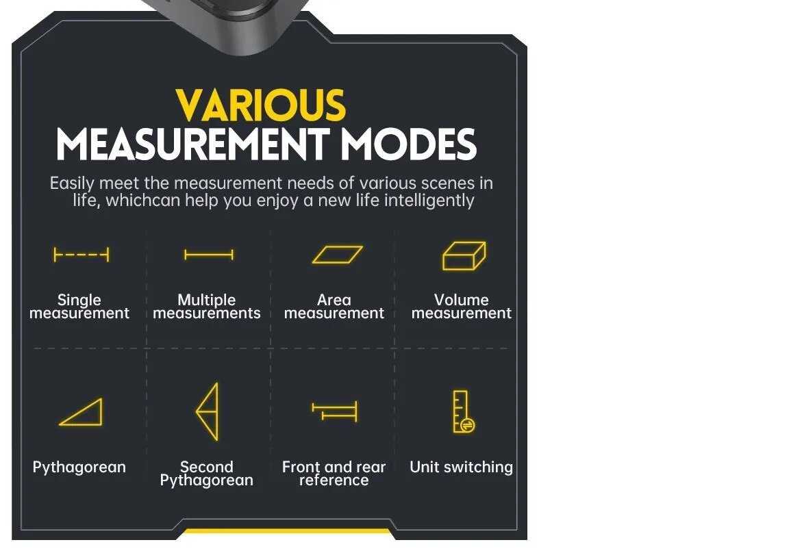 не ожидал от такого малыша такую многозадачность. показывает все необходимые измерения, измеряет площадь, объём, гипотенузу, дополнительные ещё функции. а самая главная фишка, что это всё коннектится с телефоном по блютуз и в режиме реального времени, он все измерения заносит сразу в телефон в приложении. и там уже в приложении это всё можно все замеры подписать, где какой замер чтобы потом не запутаться и точно знать, где что. и в добавок ко всему этому и ещё там же в приложении есть калькулятор, который сразу всё суммируешь или вычитаешь всё что нужно это просто класс. а Вишенка на торте это то что так же там в приложении ты можешь начертить лёгкий эскизик ну, типа план помещения со всеми выступами, и проставить все замеры сразу быстро.