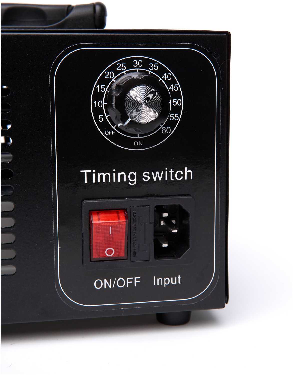 - Вентилятор ускоряет распределение озона, позволяя обрабатывать автомобили за 20 минут, а комнаты – за 30-40 минут.