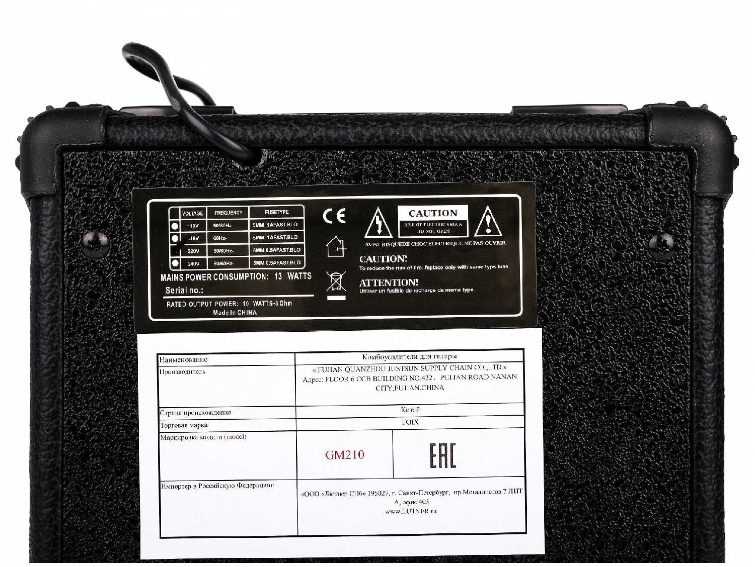 В комплекте : | Комбоусилитель для электрогитары FOIX GM210 |
