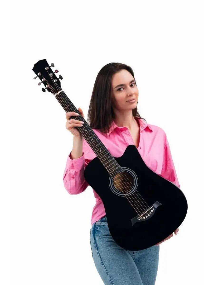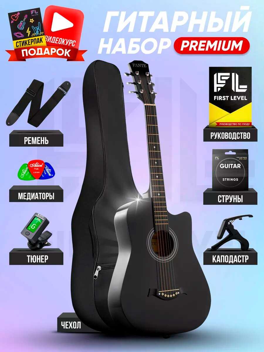 - В набор входят запасные струны, тюнер, медиаторы (6 шт.), каподастр, ремень и чехол, что избавляет от необходимости докупать аксессуары отдельно.