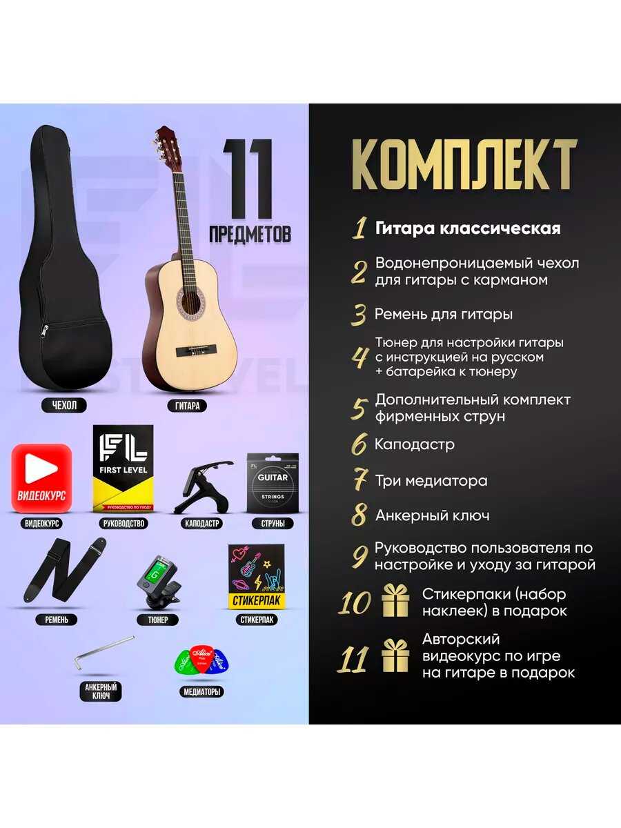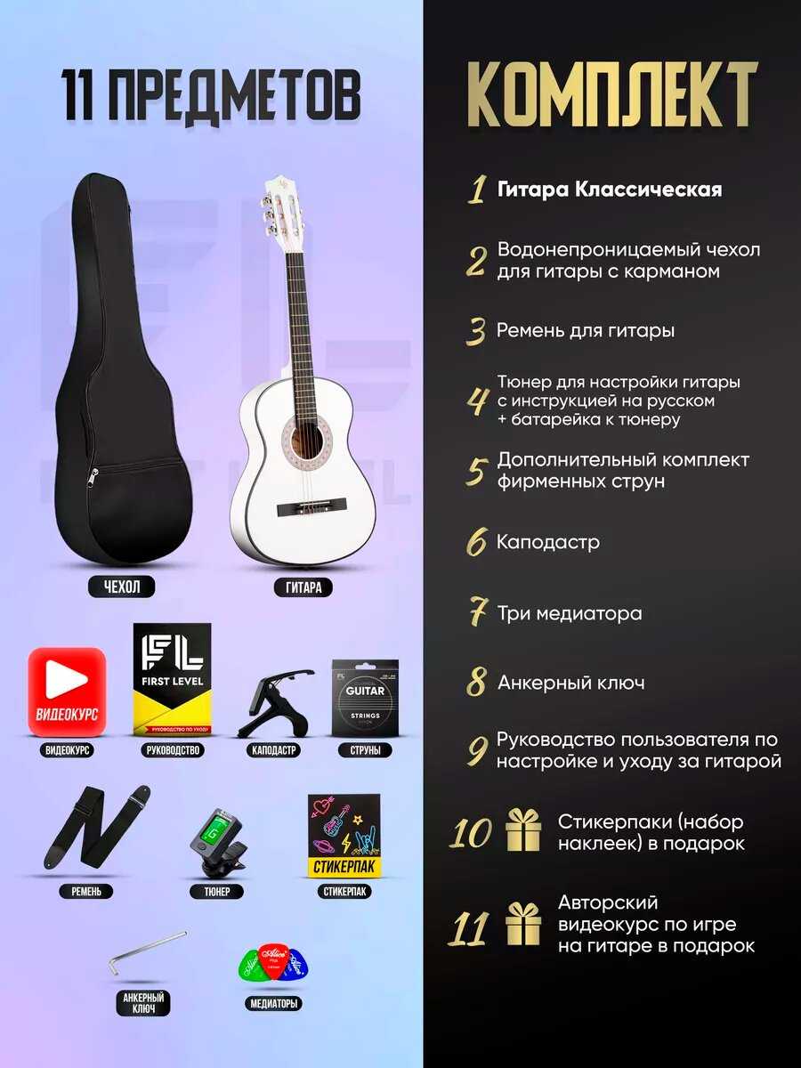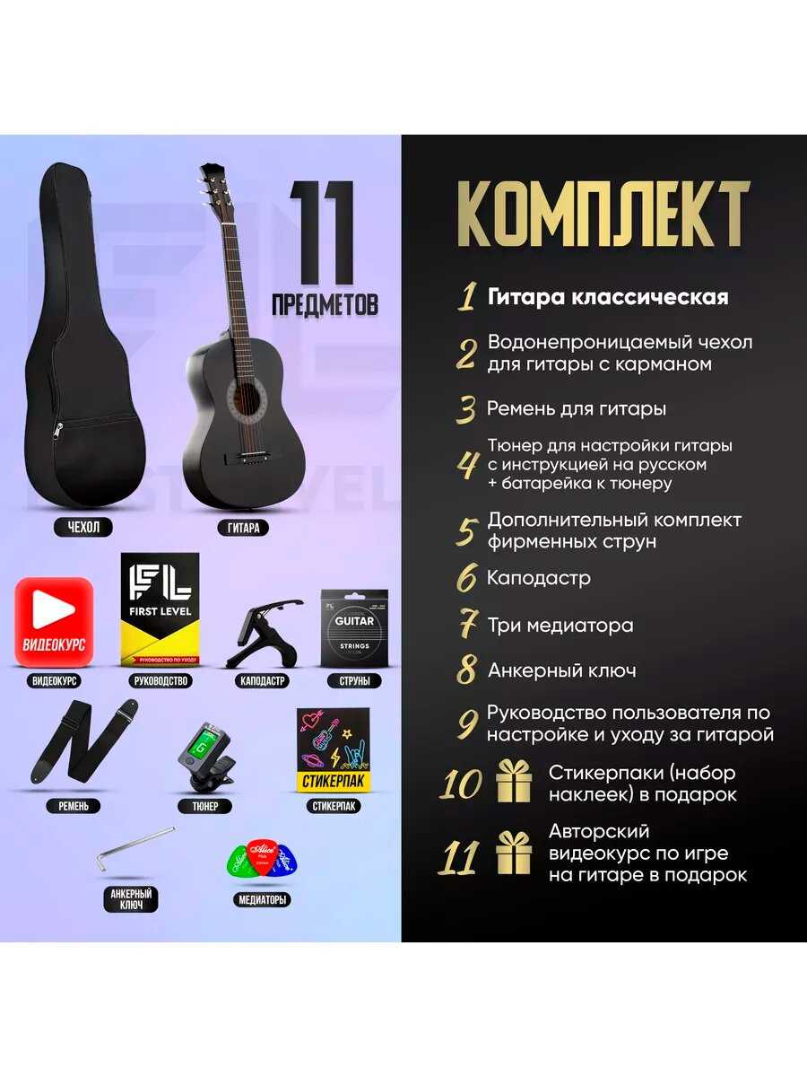 - + Отличная гитара со всеми дополнительными плюшками, которые указаны в комплекте. Видео курс по обучения присутствует
