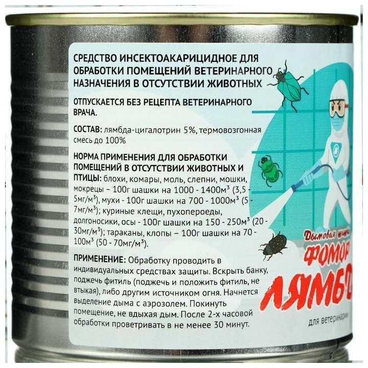Состав : | лямбда-цигалотрин 5%, термовозгонная смесь до 100% |