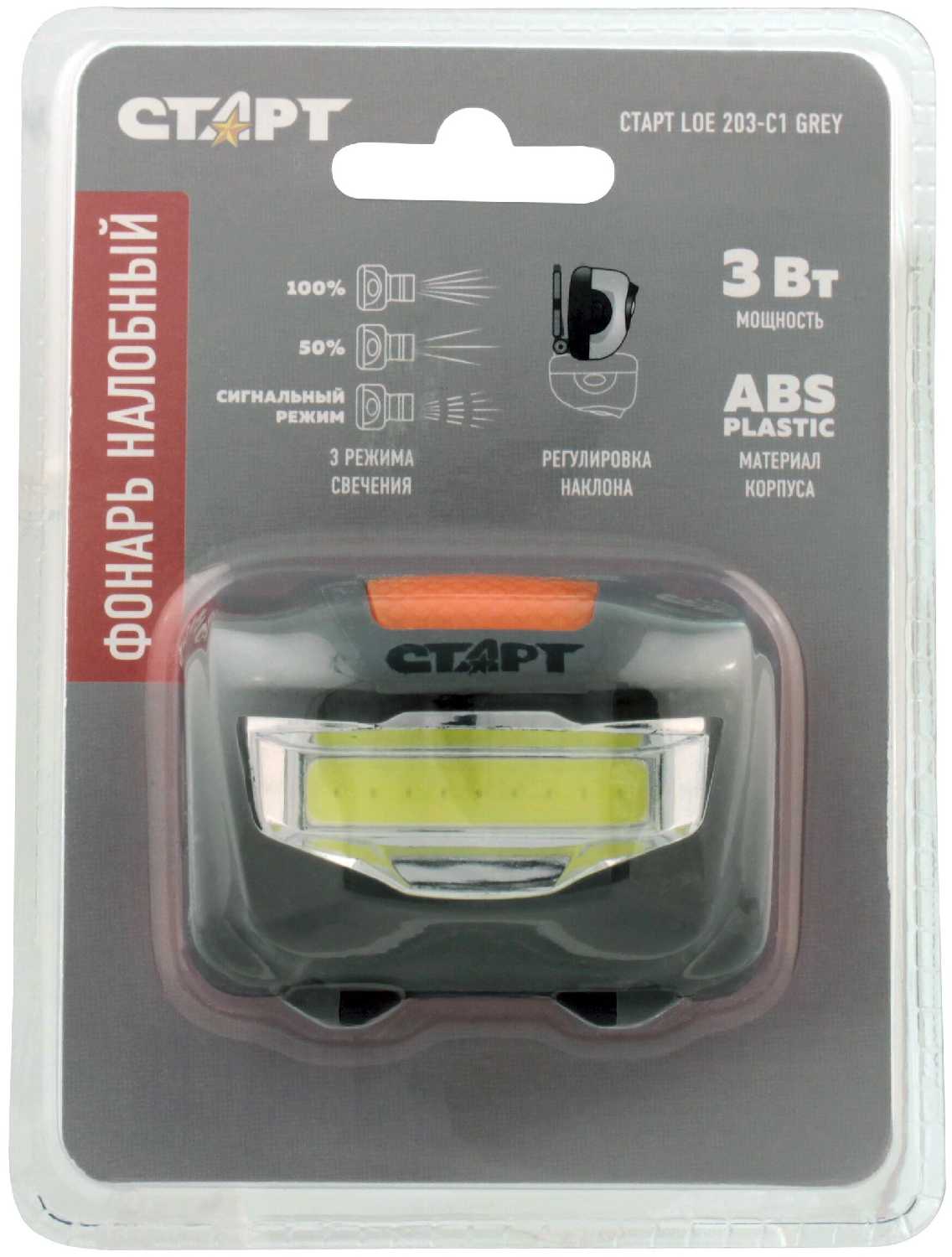 Старт Налобный фонарь СТАРТ, LOE 203, светодиодный, серый