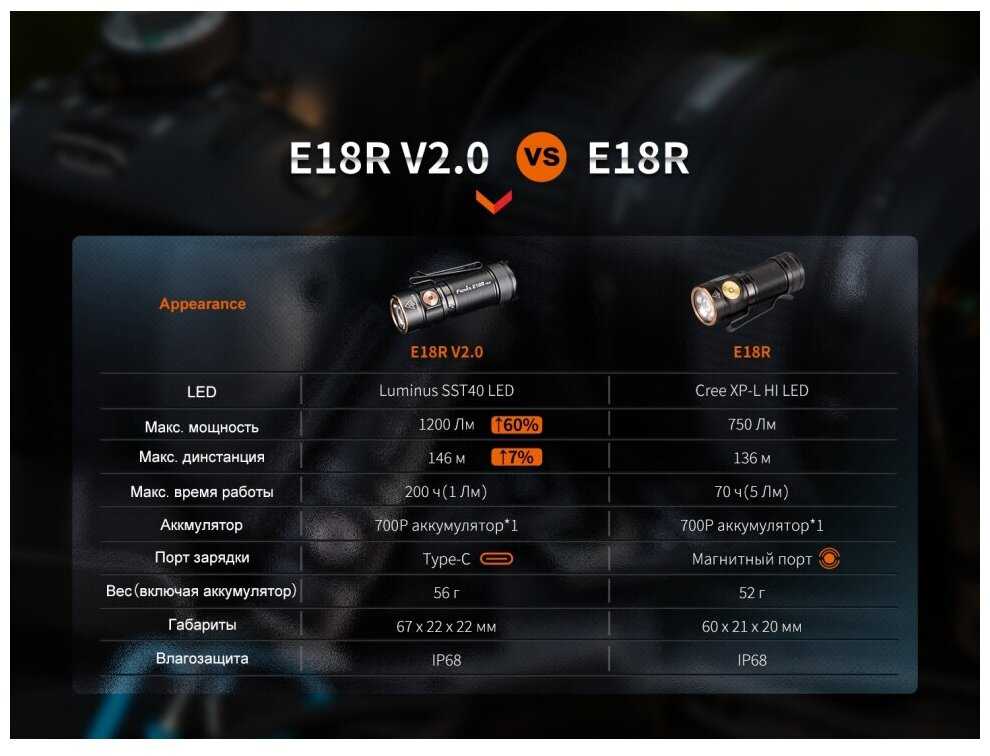 7.7/10 балловFenix E18R V2.0, 1 x 16340, диод Luminus SST-40, 146 метров, 1200 люмен (Комплект)