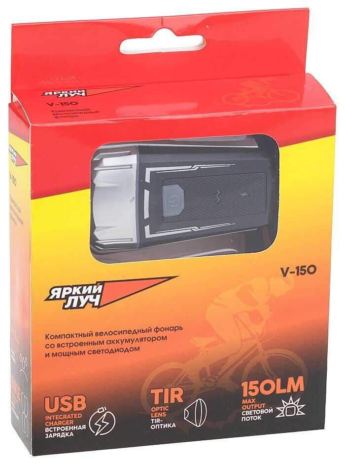 6.6/10 балловЯркий Луч Фонарь яркий ЛУЧ V-150 велосипедный 150 люмен, 3 режима, Li-Po 1200 мАч, ЗУ micro- USB, IP44