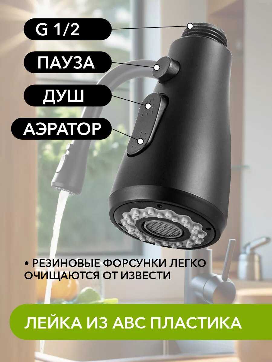 Смеситель оснащен удобной кнопкой для остановки воды, что особенно полезно при наполнении емкостей или экономии воды. Переключение между режимами работы (струя-душ) осуществляется плавно и интуитивно понятно. Некоторые пользователи отмечают, что лейка не всегда фиксируется в конечном положении и требует дополнительного контроля. -