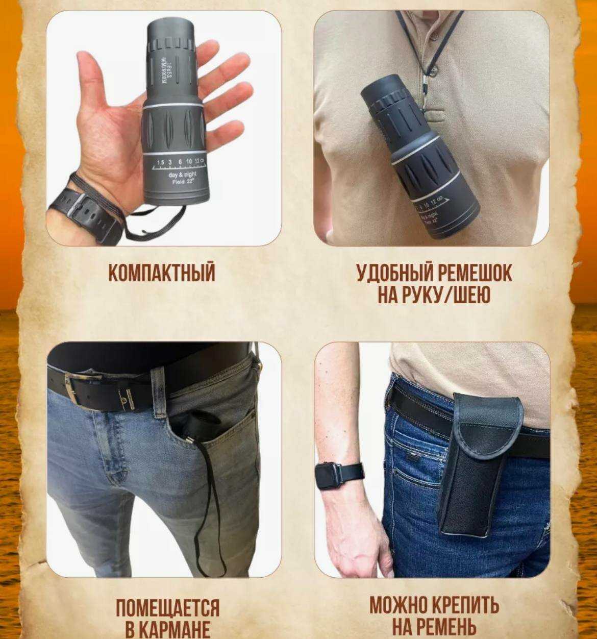 - + легкий, монокуляр с постоянным фокусом, брал для походов в лес, в поле, на рыбалку