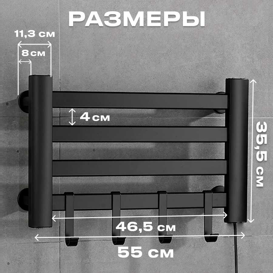 - + небольшой, как и надо было, на одно полотенце, смотрится очень стильно, хорошо греется