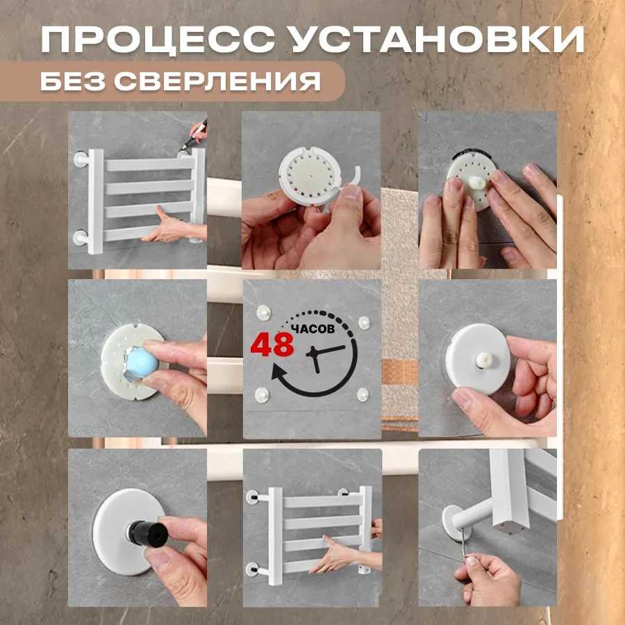 - Клеевые "пятачки" часто отклеиваются под нагрузкой (даже 1 полотенца), особенно на гладких поверхностях (плитка), несмотря на обезжиривание и выдержку 72 часа.
