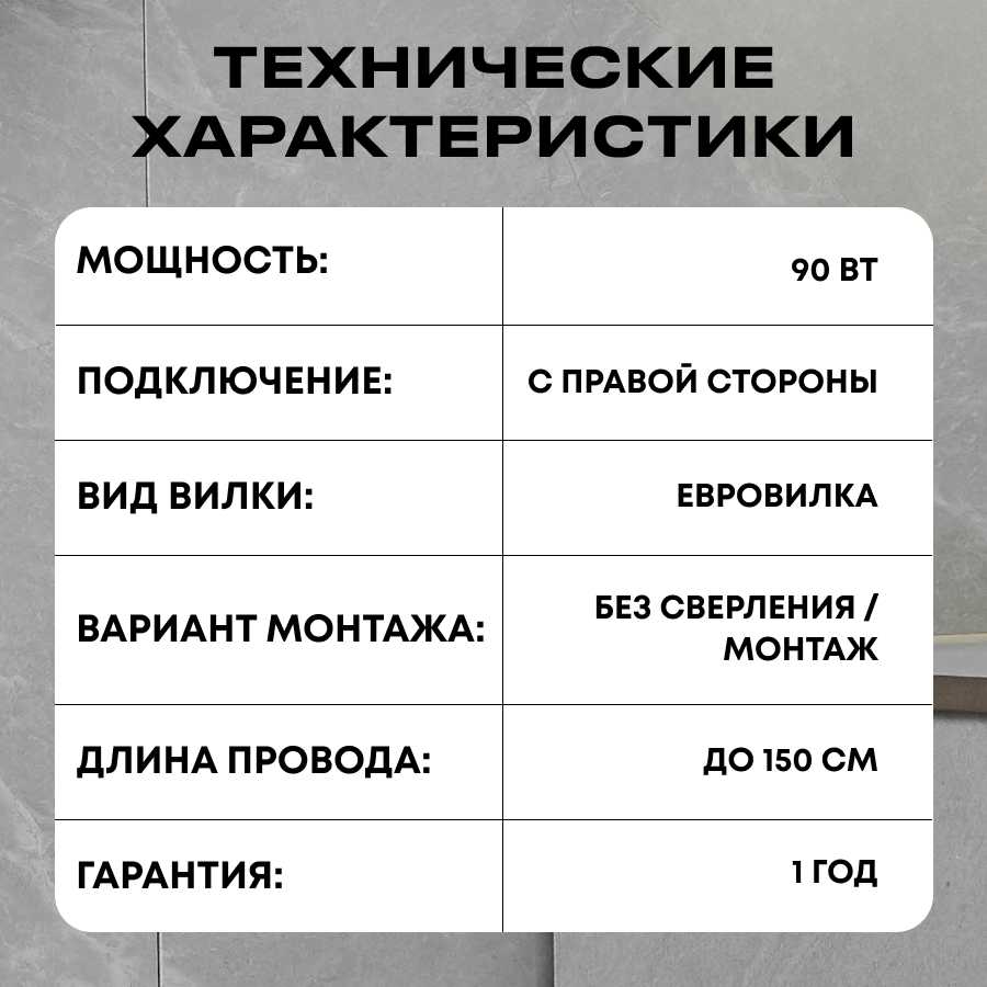 - Оптимальная мощность (не указана, но выводится из отзывов): прогревает зону быстро даже на 45°C, снижая расход электроэнергии.