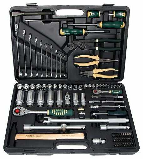 | Инструменты в комплекте : | вороток для головок, клещи, ключи гаечные, ключи имбусовые (шестигранные), круглогубцы, молоток, отвёртки, пассатижи, трещотка |
