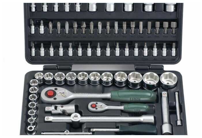 Аксессуары в комплекте : | бита-адаптер для торцевых головок, вороток для метчиков, вороток для плашек, гибкий удлинитель для бит, гибкий удлинитель для головок, держатель для бит, переходник для головок, удлинитель для бит, удлинитель для головок, шарнир карданный для головок |