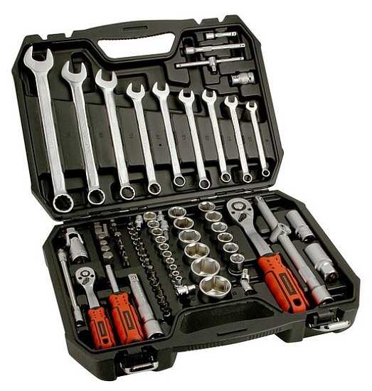 | Инструменты в комплекте : | вороток для головок, ключи гаечные, ключи имбусовые (шестигранные), отвёртки, рукоять для бит, рукоять для головок, трещотка |