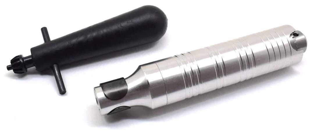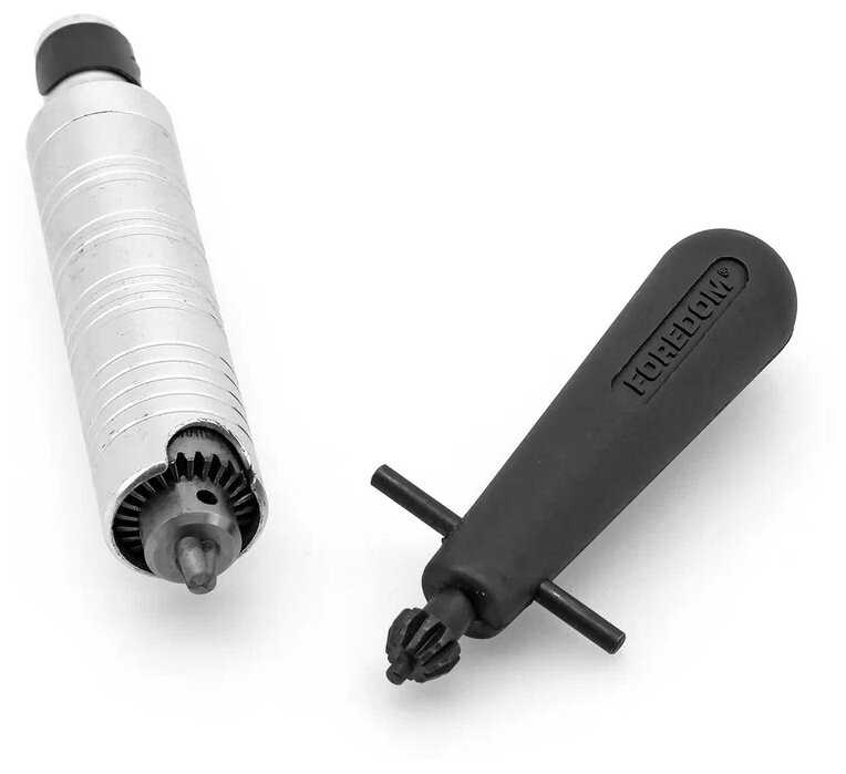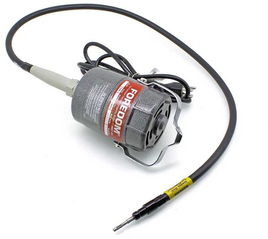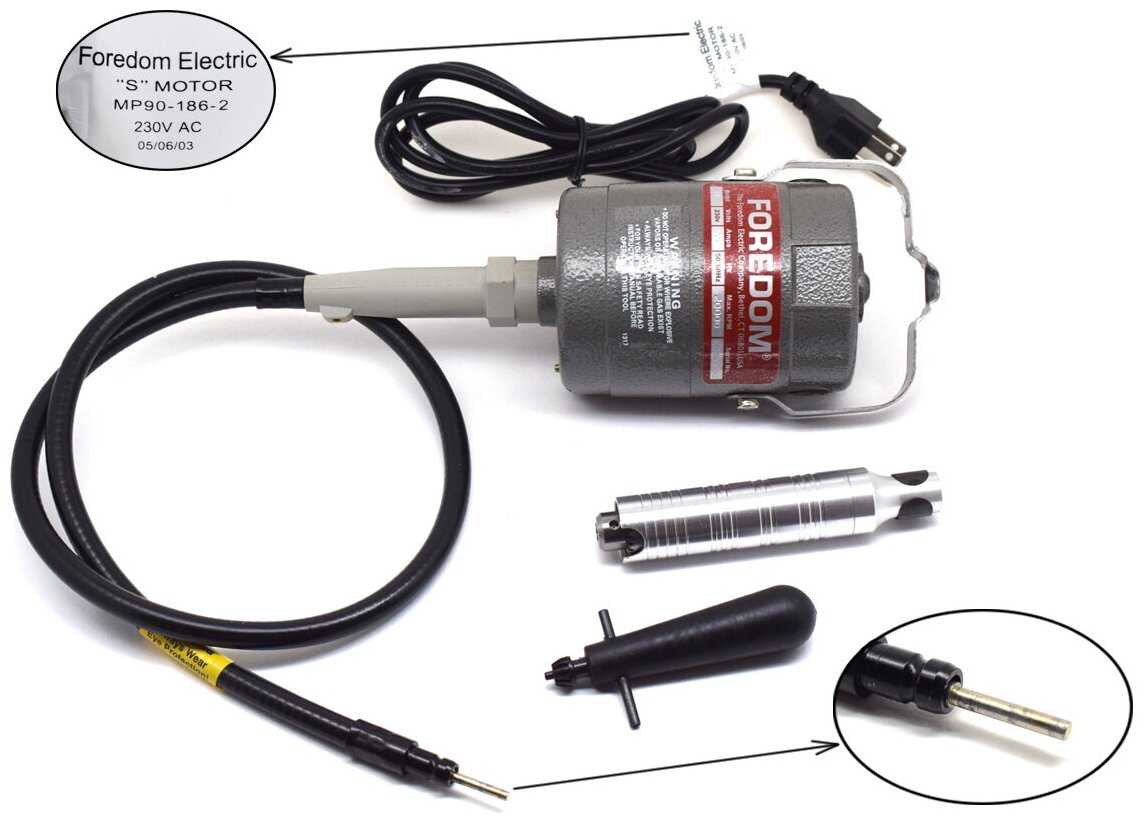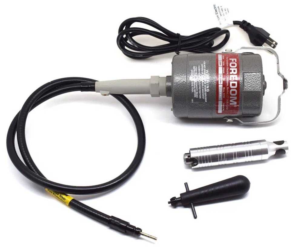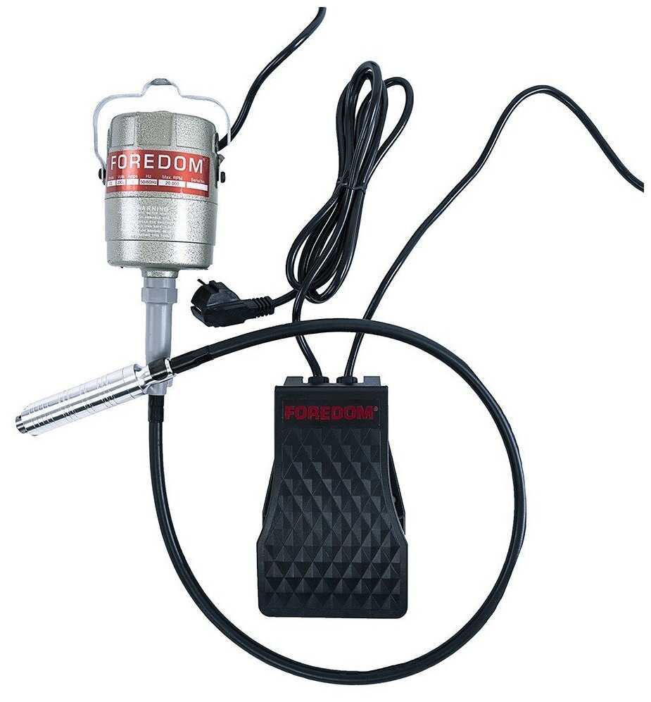 - + педаль, регулируются количество оборотов, крепление для шарошек - патрон
