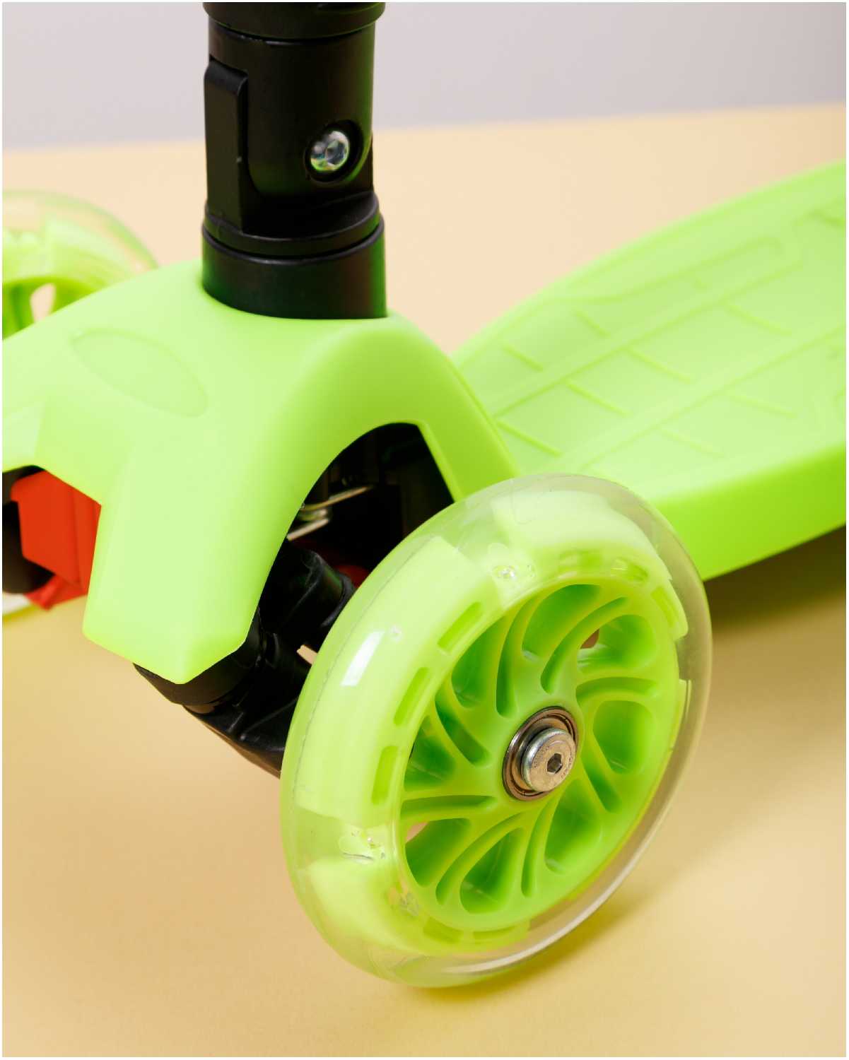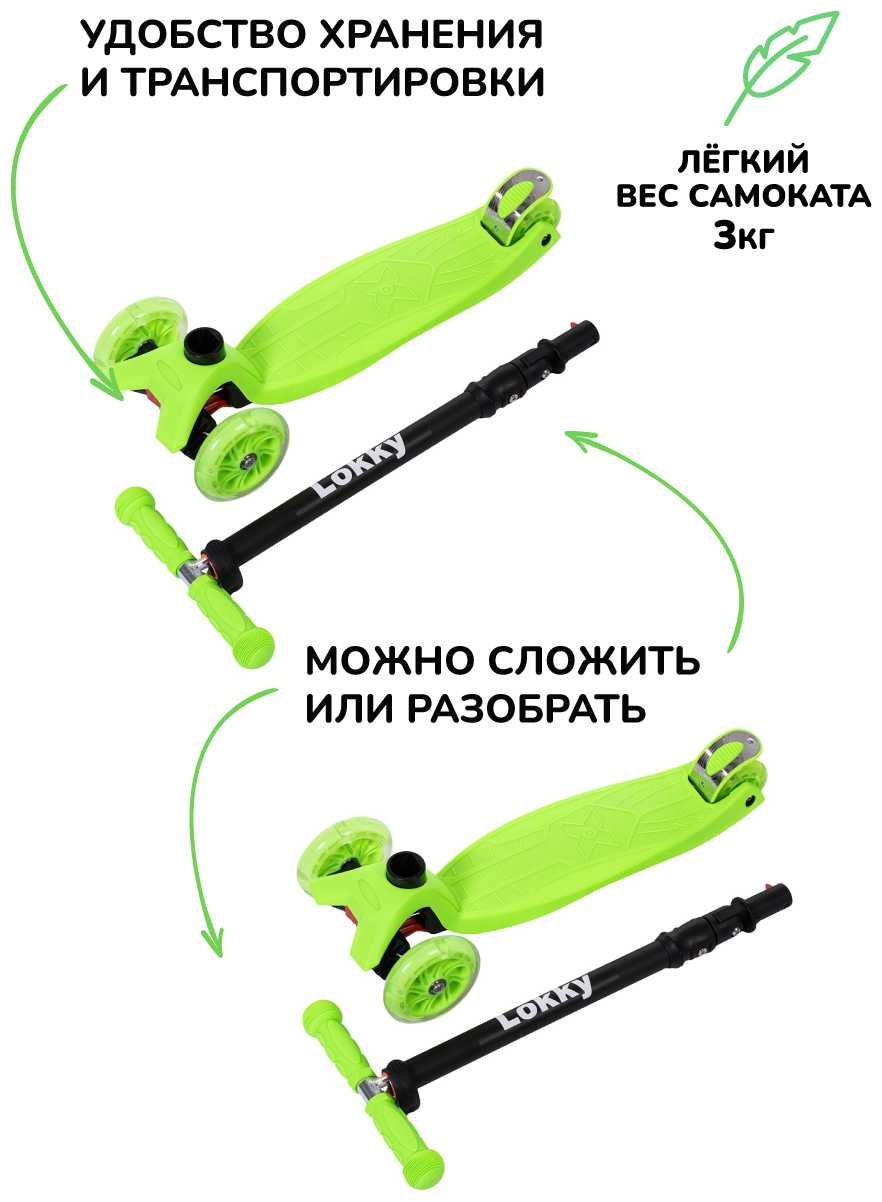 - + Качественная сборка, металлическая дека, складной руль, светящиеся колеса.