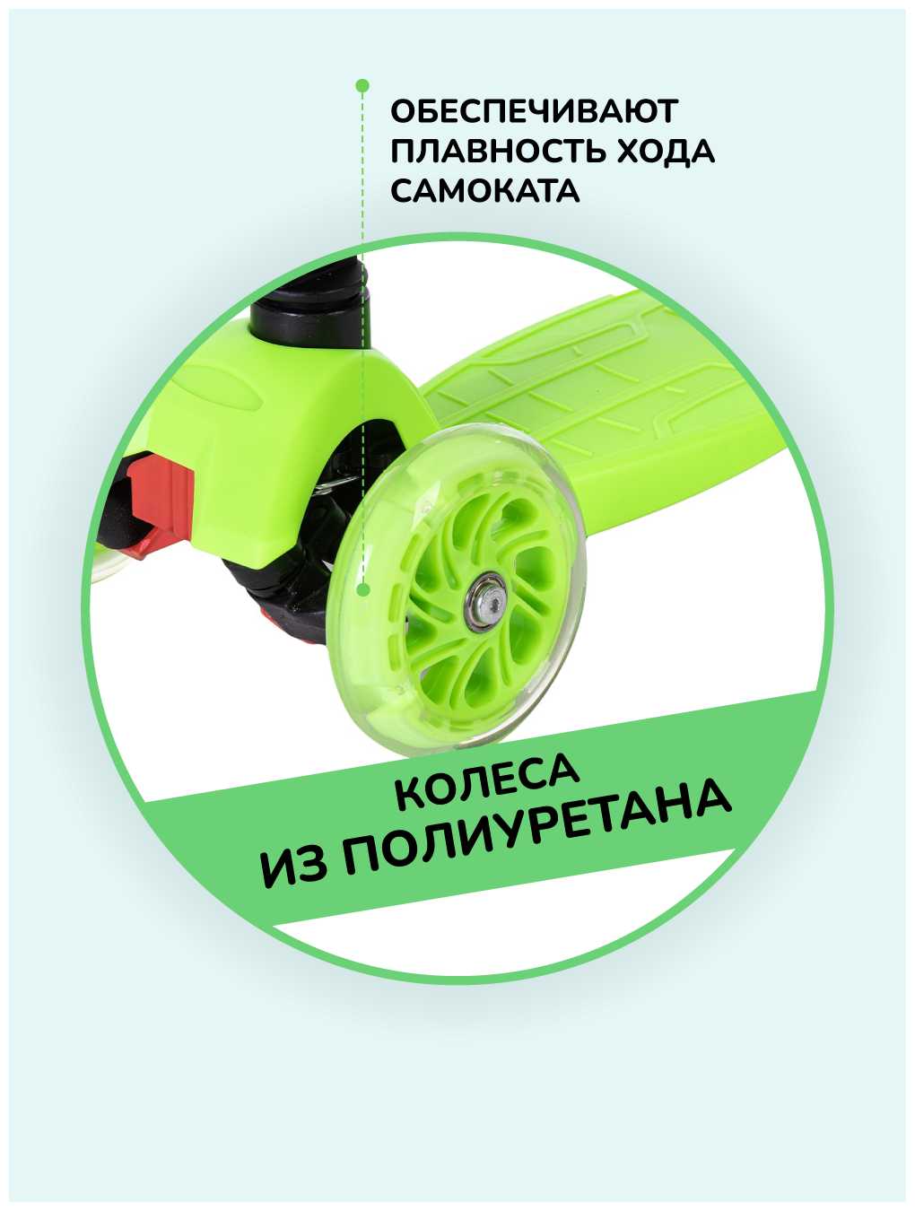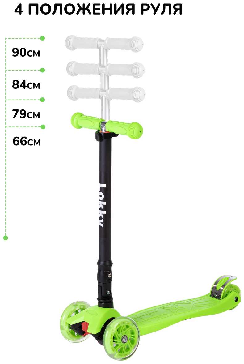 - + Очень удобный самокат, легко поднимается и опускается руль, колеса светятся.