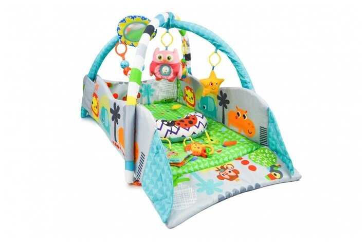 - + О-о-о-чень хороший коврик! Мягкие игрушки и книжка в комплекте. Ребенок с удовольствием играет.