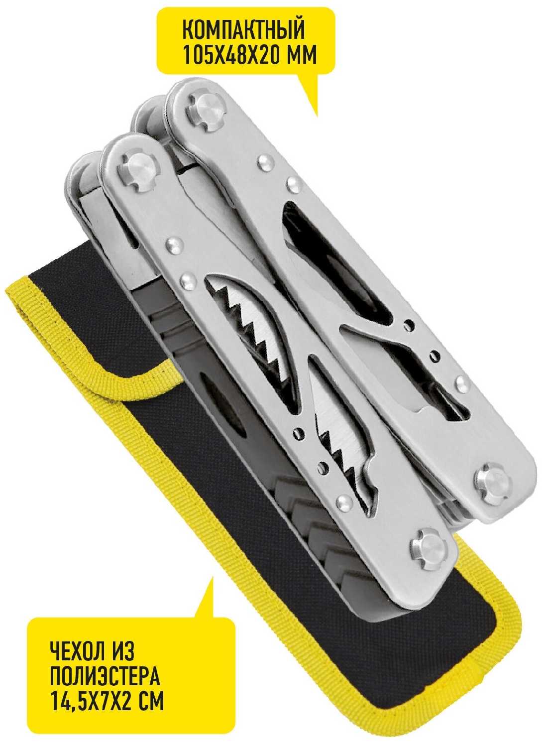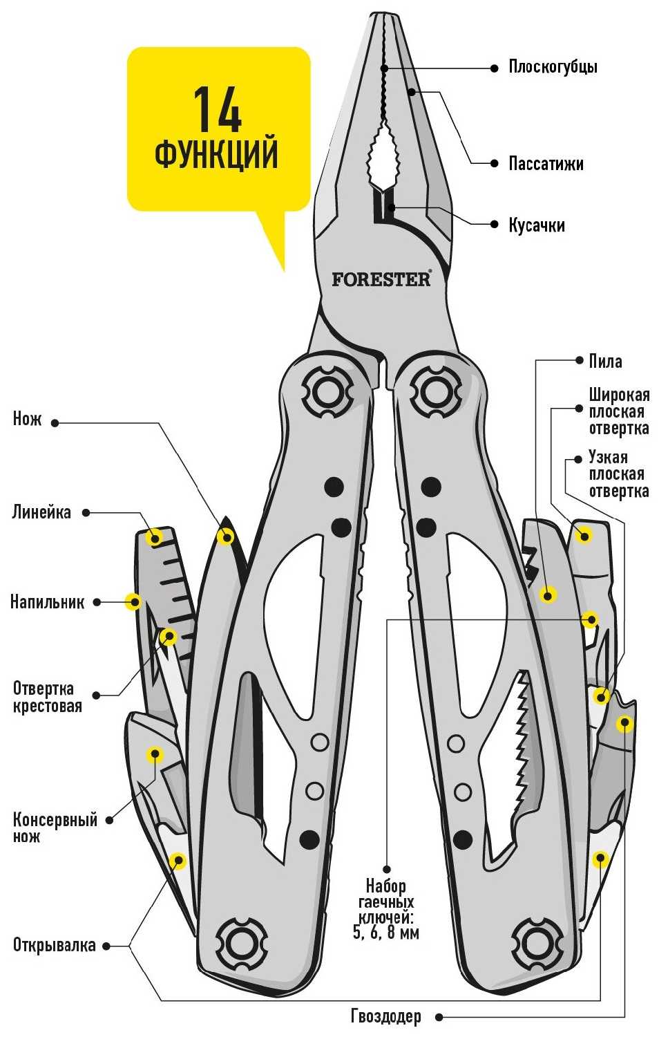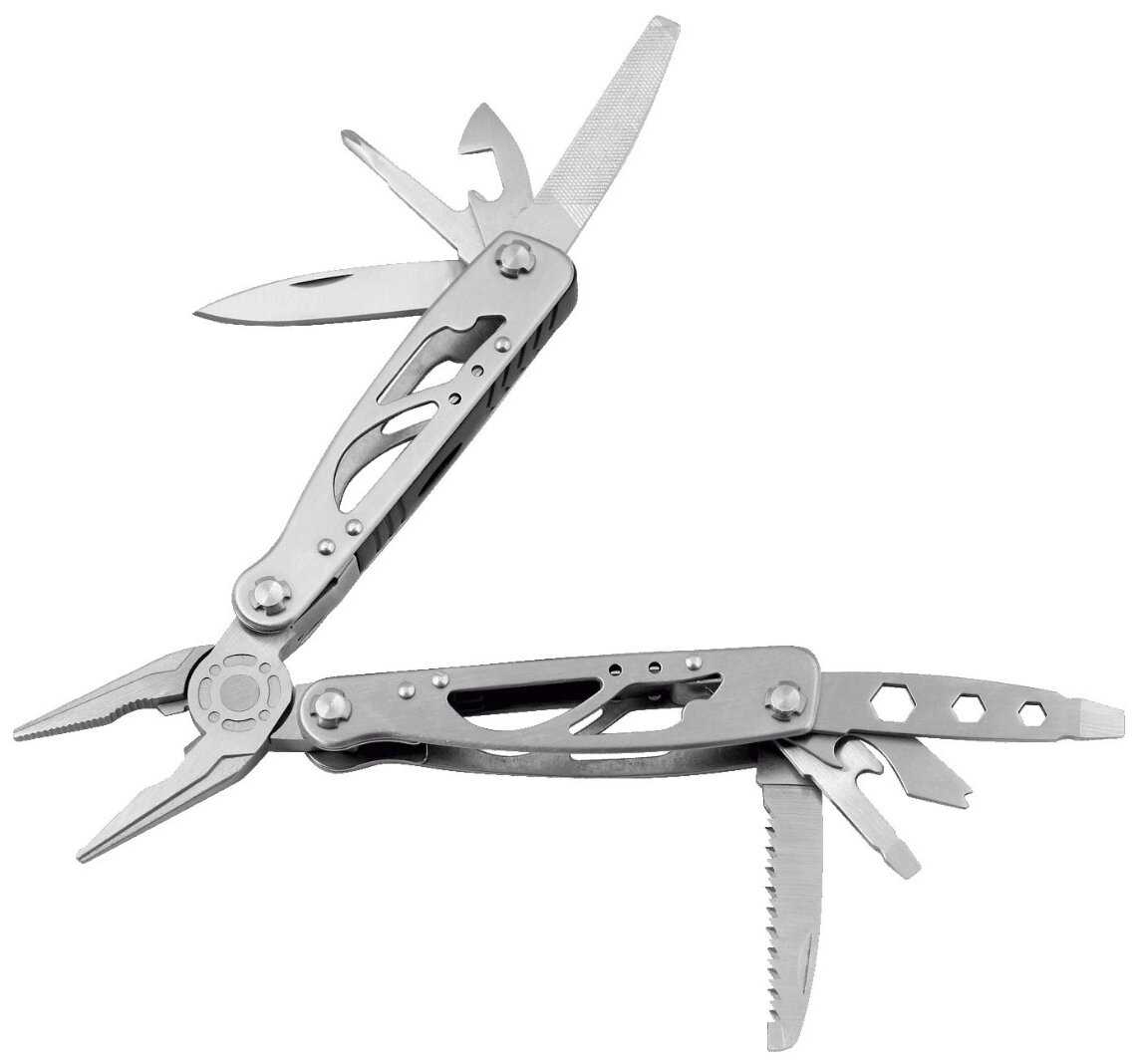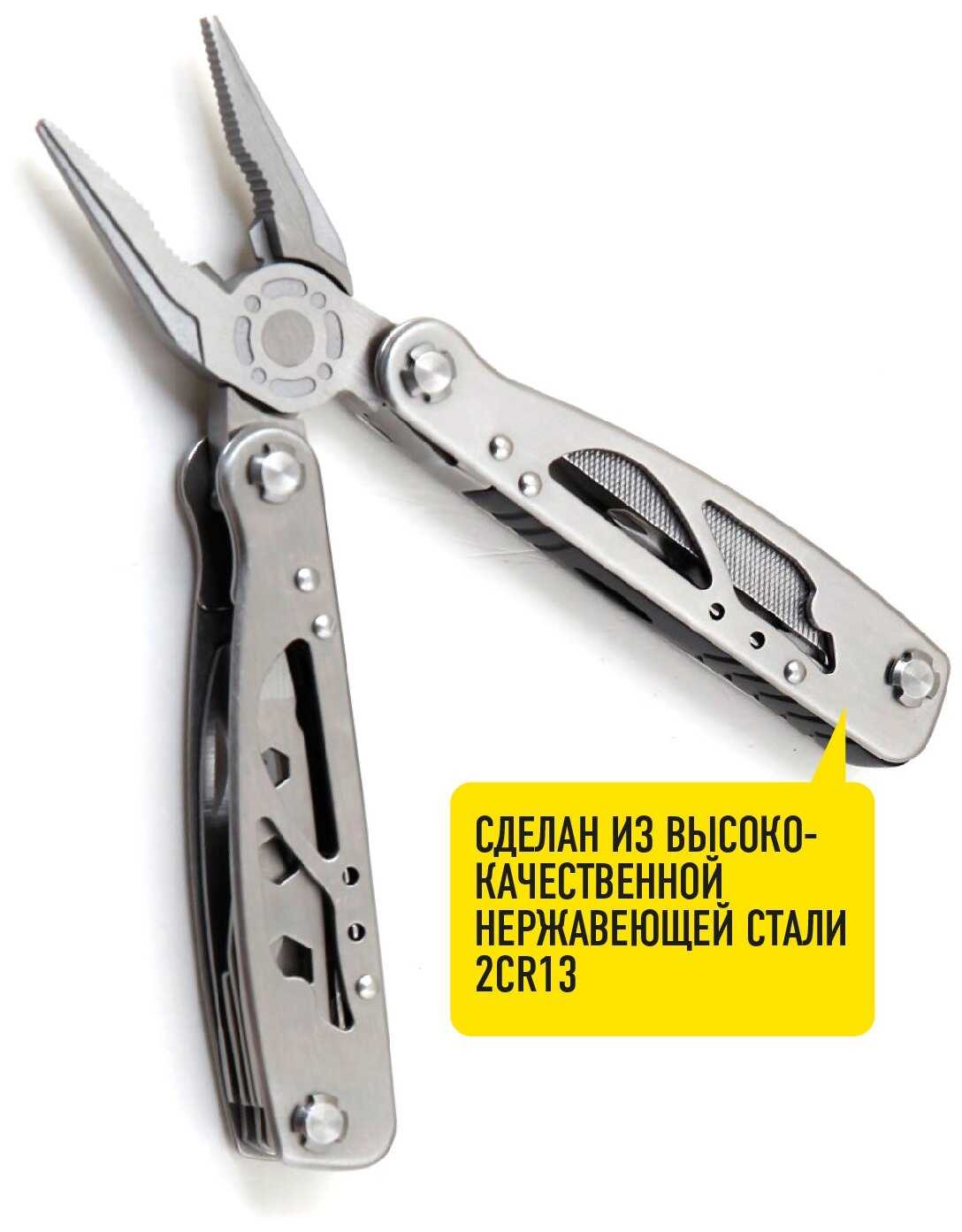- + Изготовлен из качественной стали. Много функций. Есть чехол для хранения.