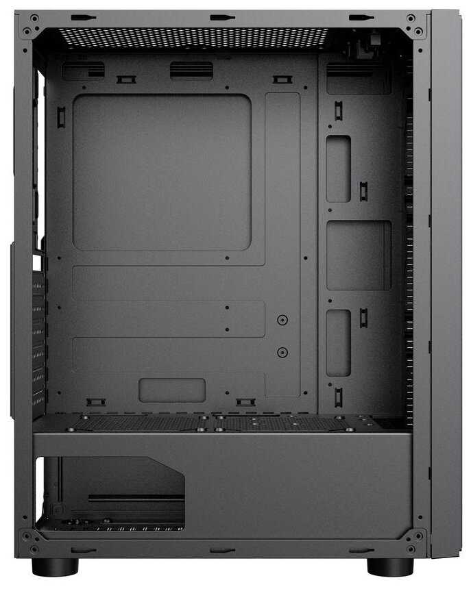 - Боковая панель из тонированного закаленного стекла (не пластика или акрила), позволяющая наблюдать за компонентами и моддингом, легко снимается без отвертки.