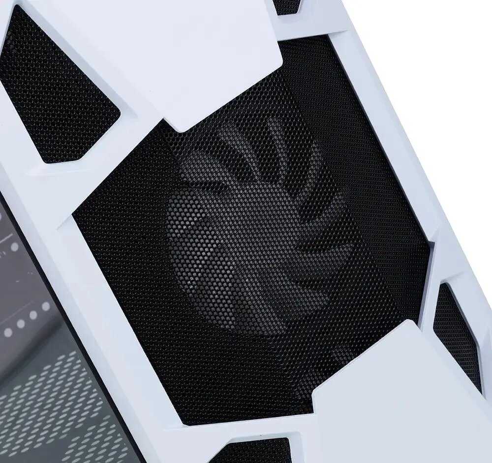 - + Корпус с отличным дизайном, вертушки с подсветкой и 6 шт, закалённое стекло это большой плюс, сверху пылевой фильтр на магните. В общем топ за свои деньги!